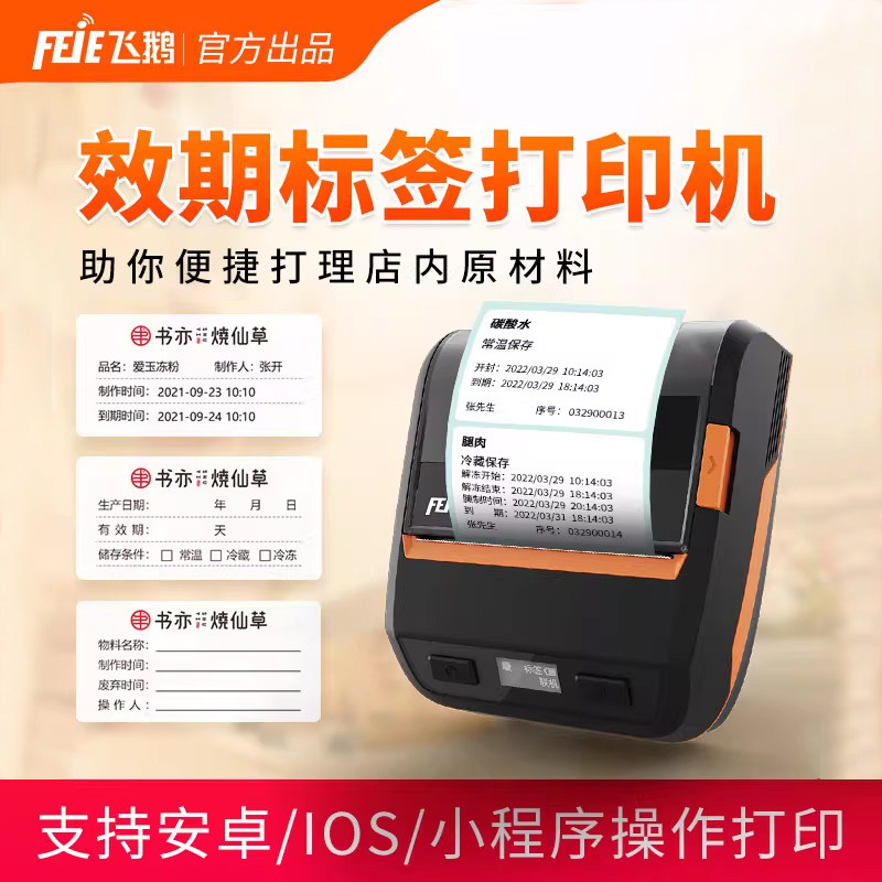 飞鹅效期标签机奶茶店餐饮店便携式食品商用生产日期面包店热敏不干胶贴纸条码手持小型价格标签打印机
