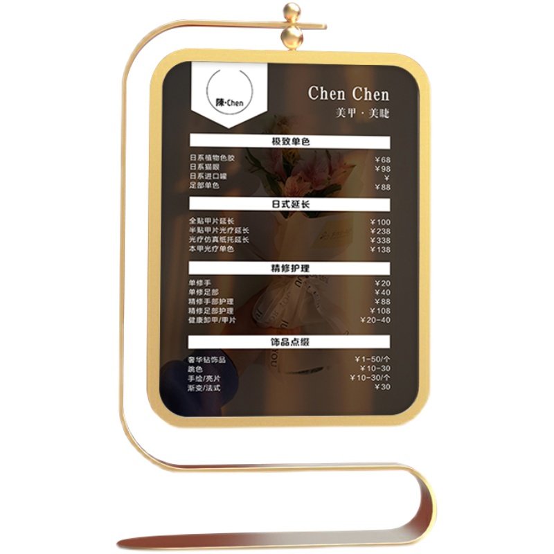 美容院半永久皮肤管理美甲美睫价格表金色旋转相框中X国风摆台定