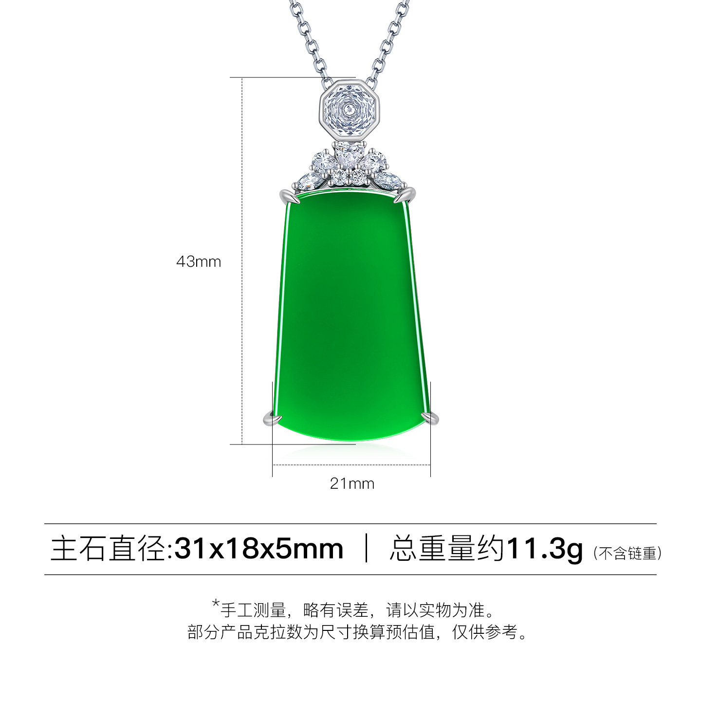 AILEQ 925银镶天然玉髓满绿方菱平安无事牌吊坠欧若风珠宝项链K10
