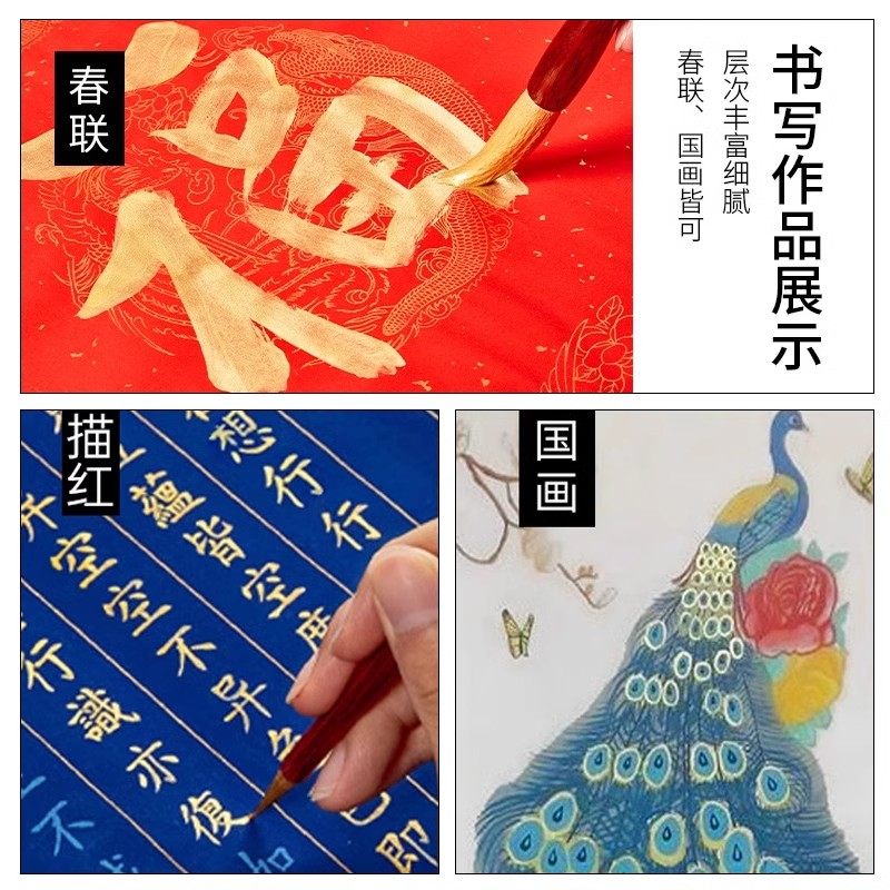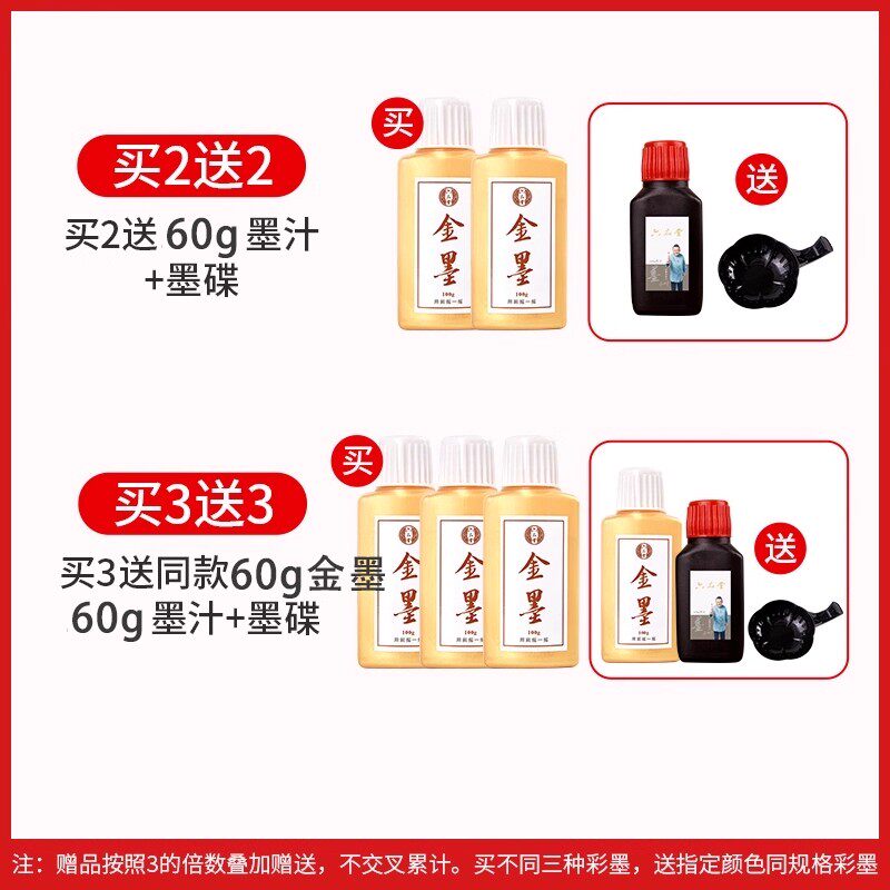 六品堂金色墨汁毛笔书法专用墨水大瓶国画练字写春联对联福字斗方金墨白墨墨液银朱砂金粉彩色红墨汁