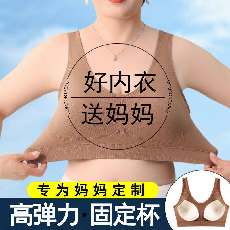 女士中老年妈妈舒适文胸无钢圈乳胶手感固定杯睡眠垫大码贴肤内衣