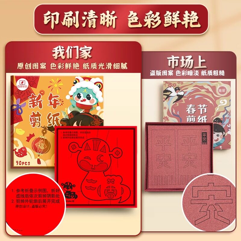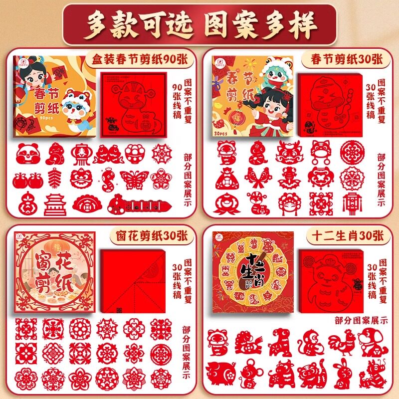 2025蛇年新年春节剪纸窗花纸剪纸儿童手工折纸专用纸张幼儿园元旦节diy小学生国风图案底稿半成品套装材料包