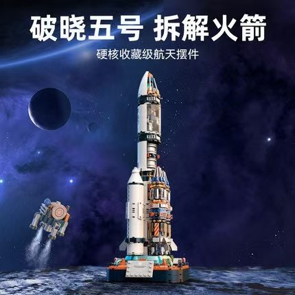 火箭5号积木中国航天飞机模型2025儿童拼装玩具男孩生日礼物摆件