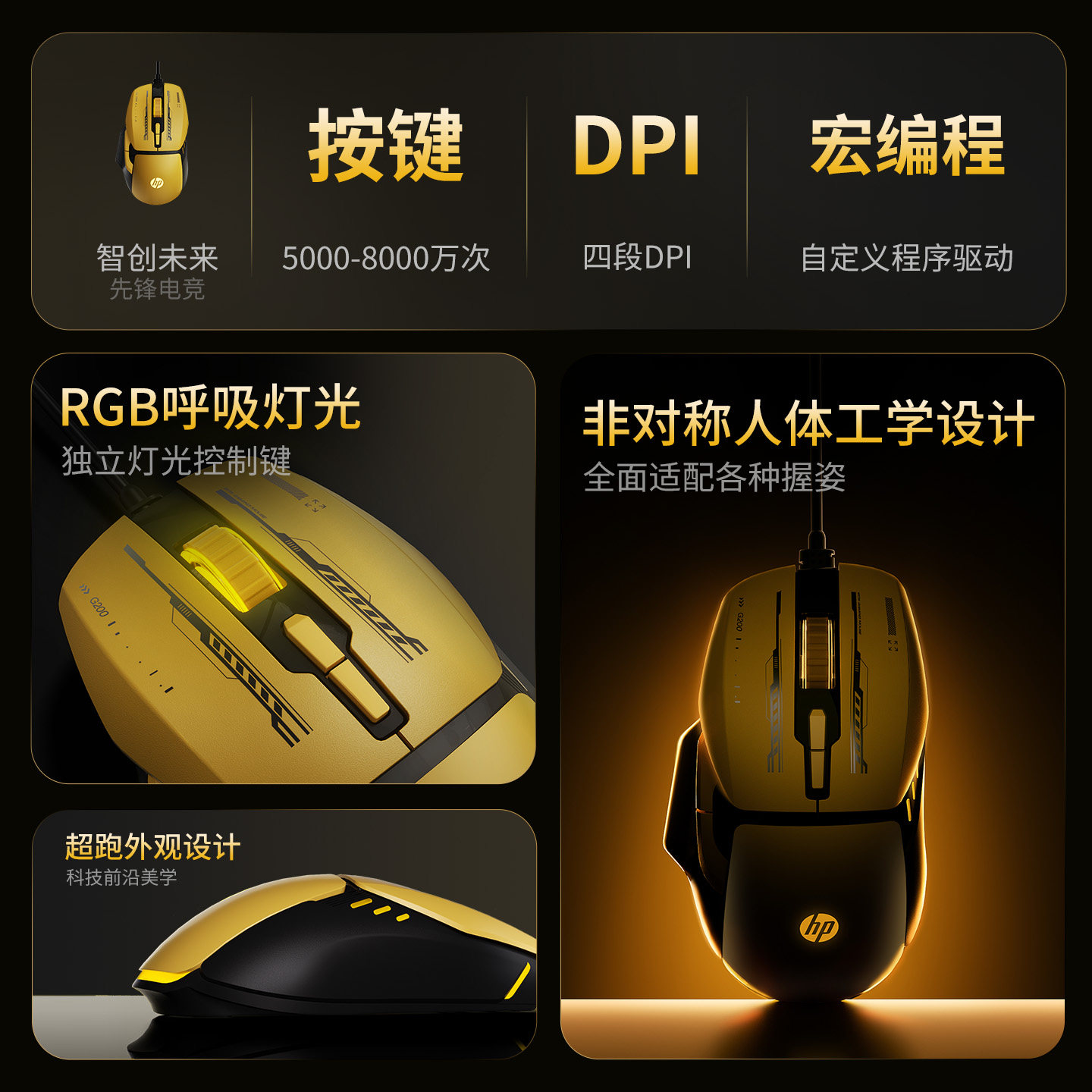 HP惠普G200机甲版有线鼠标游戏电竞笔记本电脑办公静音轻音宏编程
