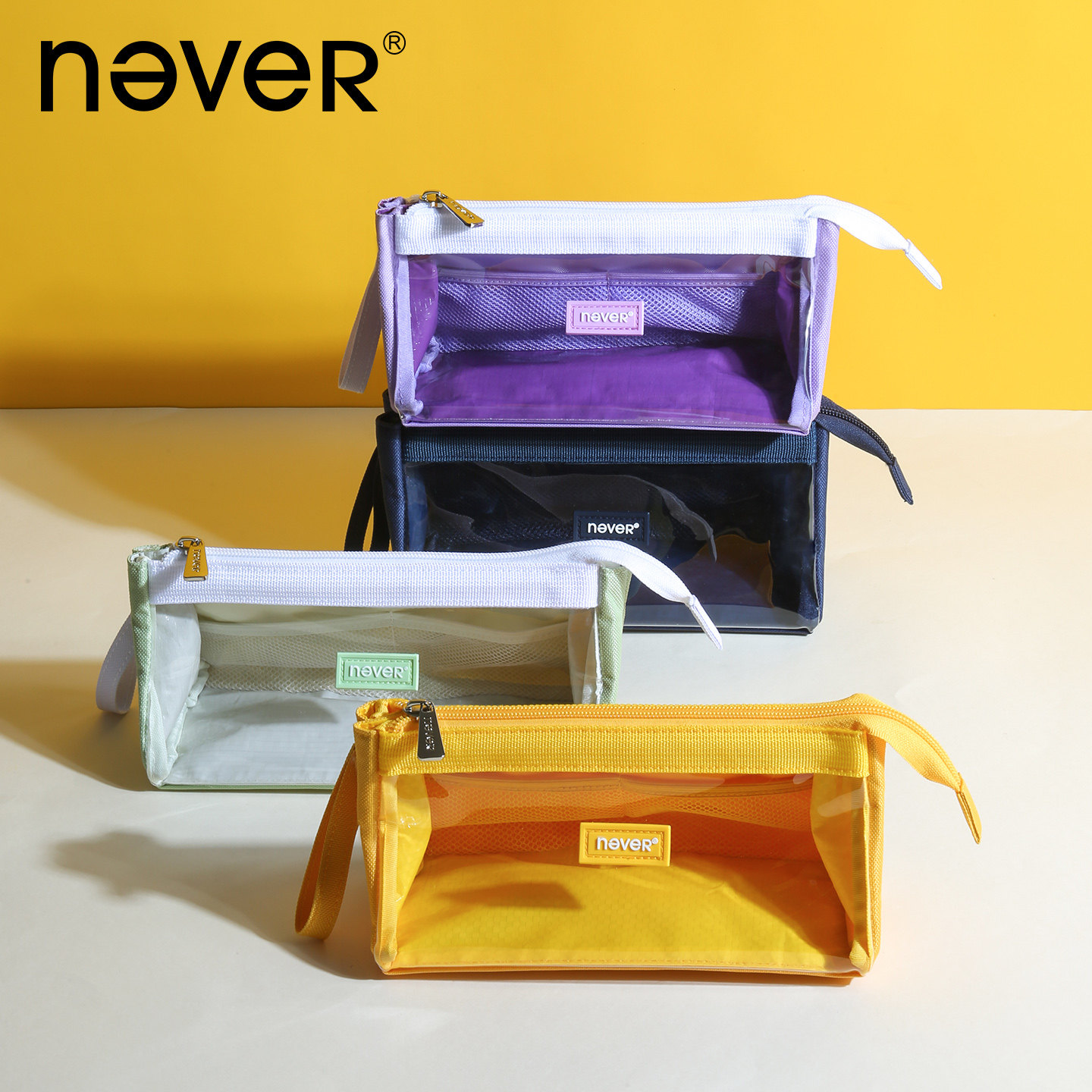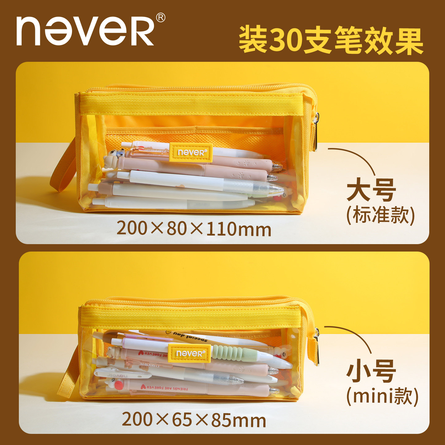 「巨能装」never糖果色笔袋ins日系透明简约男生女生学生笔盒防污