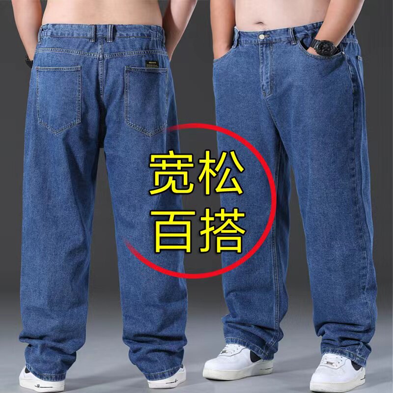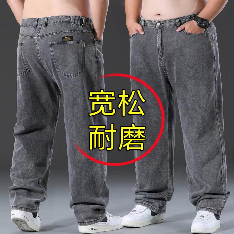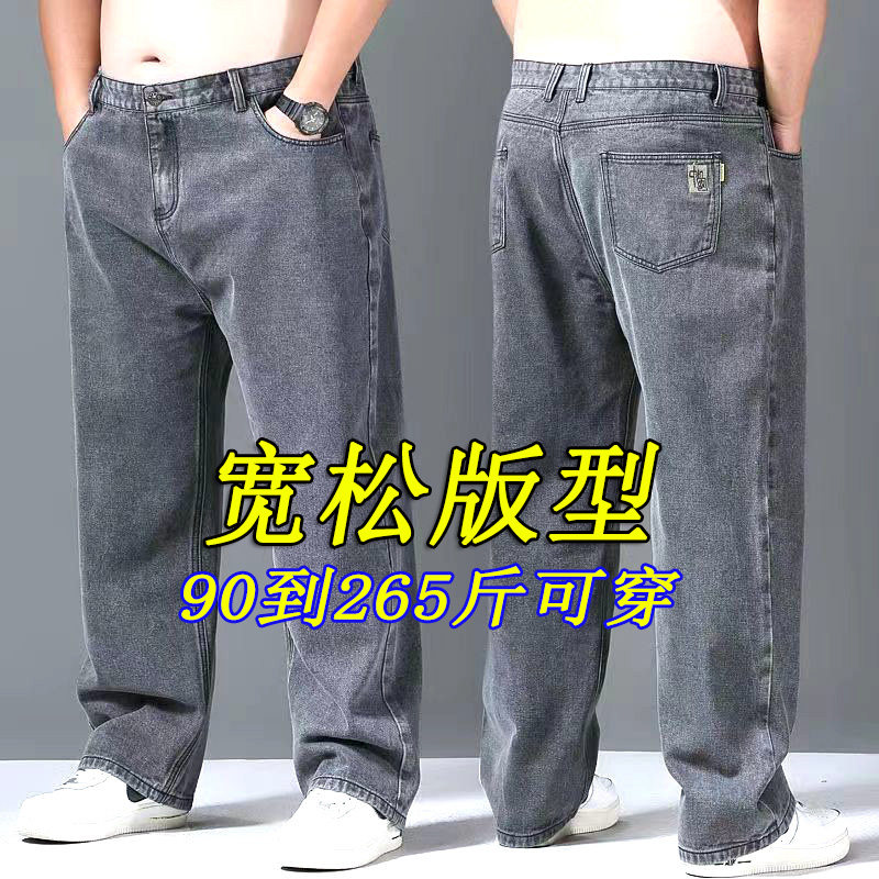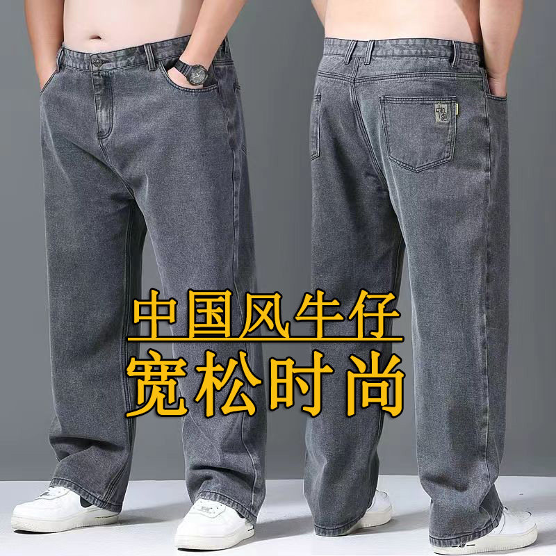 秋冬款胖哥牛仔裤男宽松直筒加肥大码男装胖人高腰肥佬百搭休闲裤