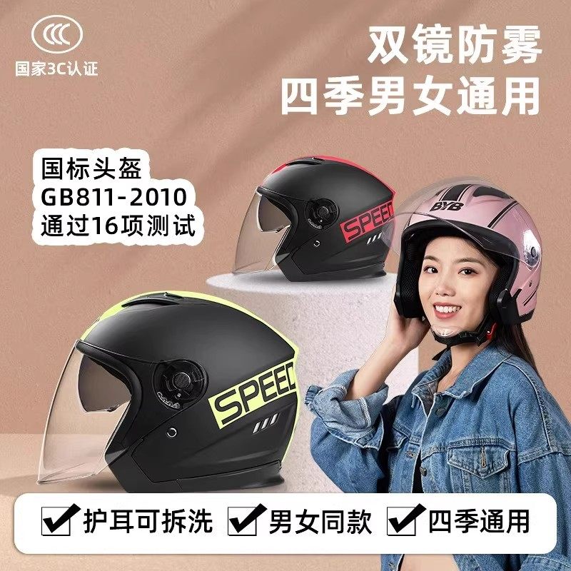 3c认证电动车头盔女士电瓶摩托半盔男四季通用骑行冬季保暖安全帽