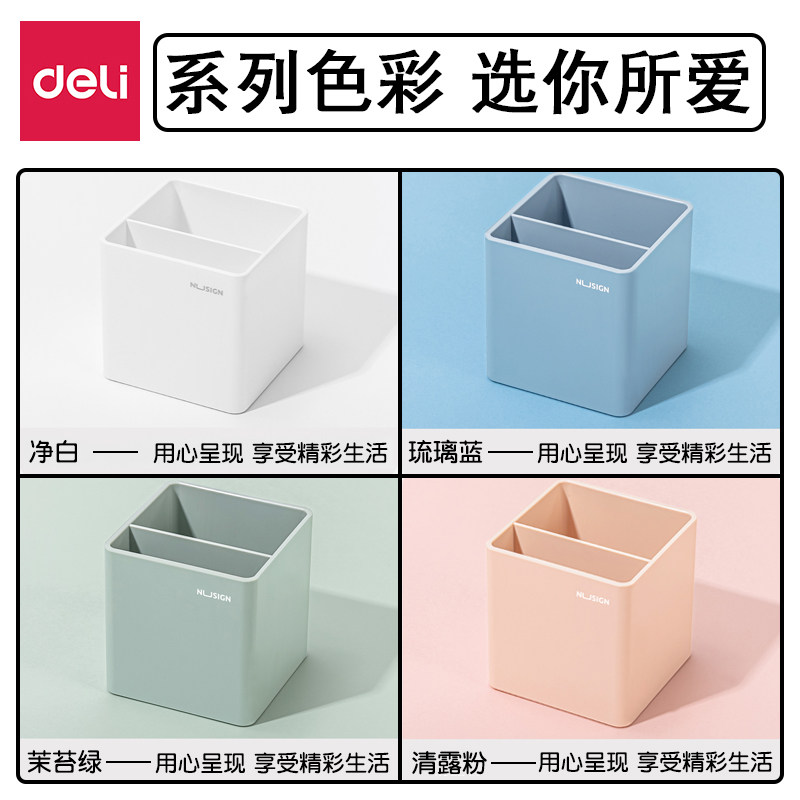 得力多功能笔筒文具收纳盒时尚可爱笔座笔插学生个性摆件笔插整理盒办公财务回形针大头针订书针订书机笔类用