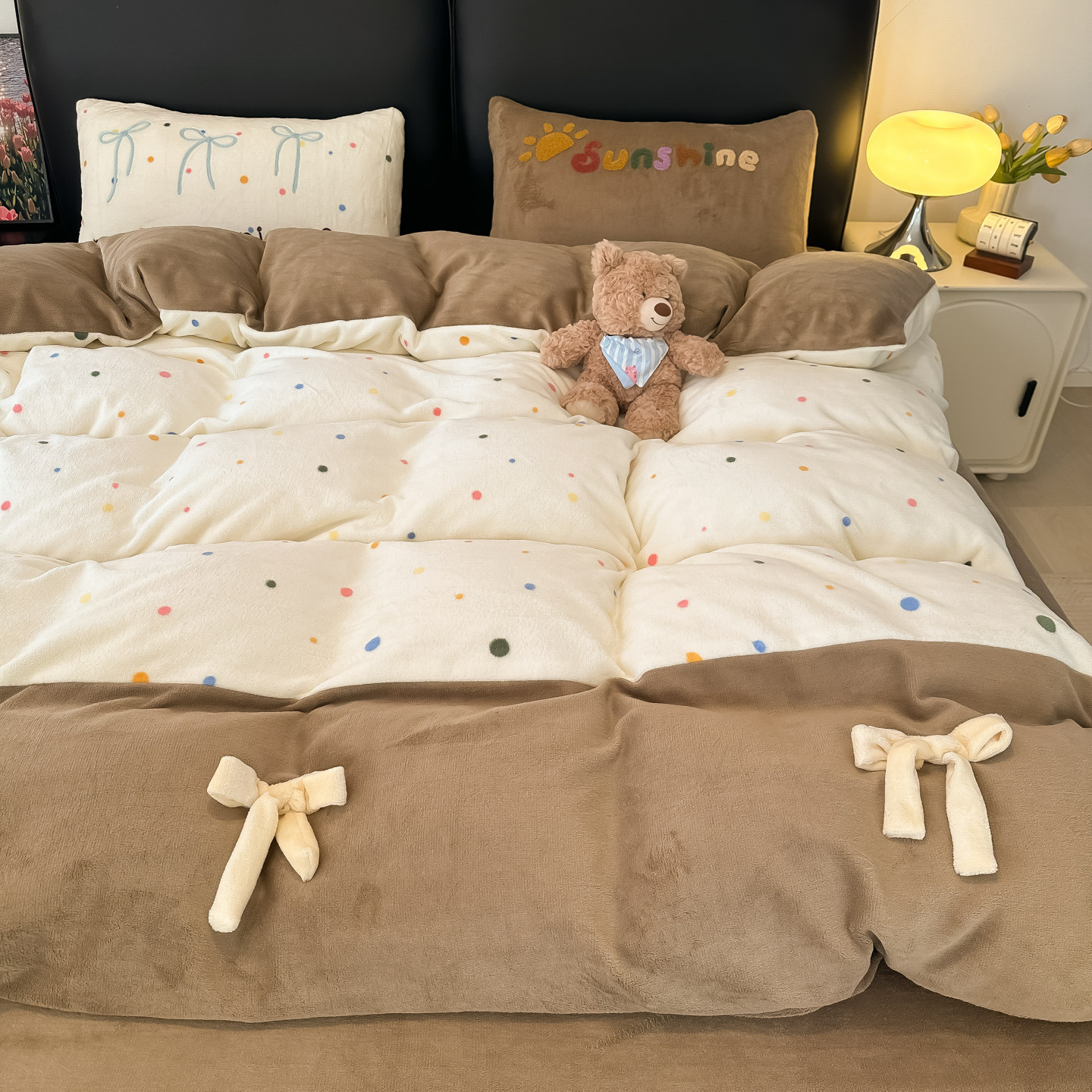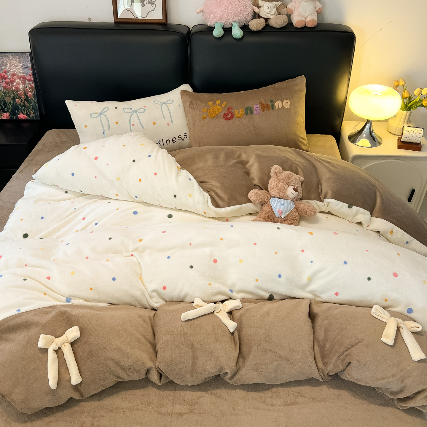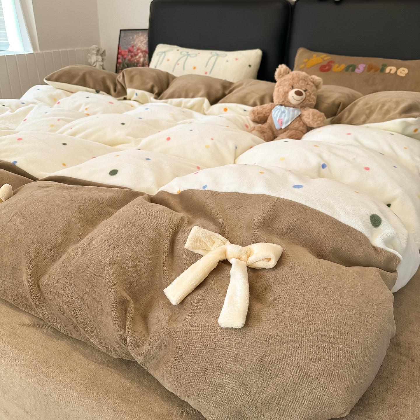 ins立体蝴蝶结加厚保暖牛奶绒四件套被套牛奶绒宿舍三件套床品