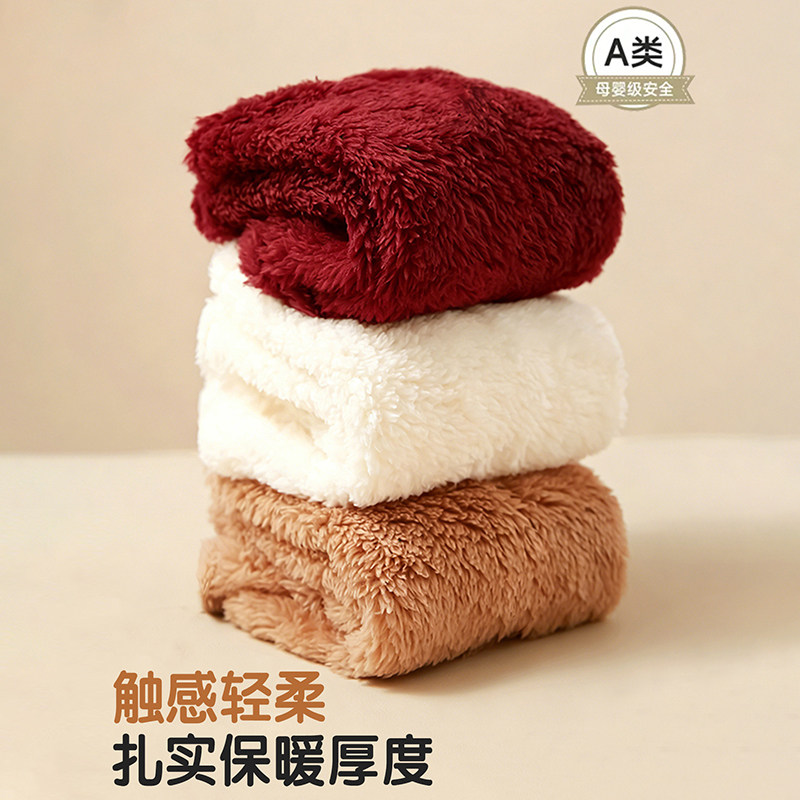 婴儿袜子秋冬季加绒加厚小宝宝红色毛绒袜套外出包脚套保暖地板袜