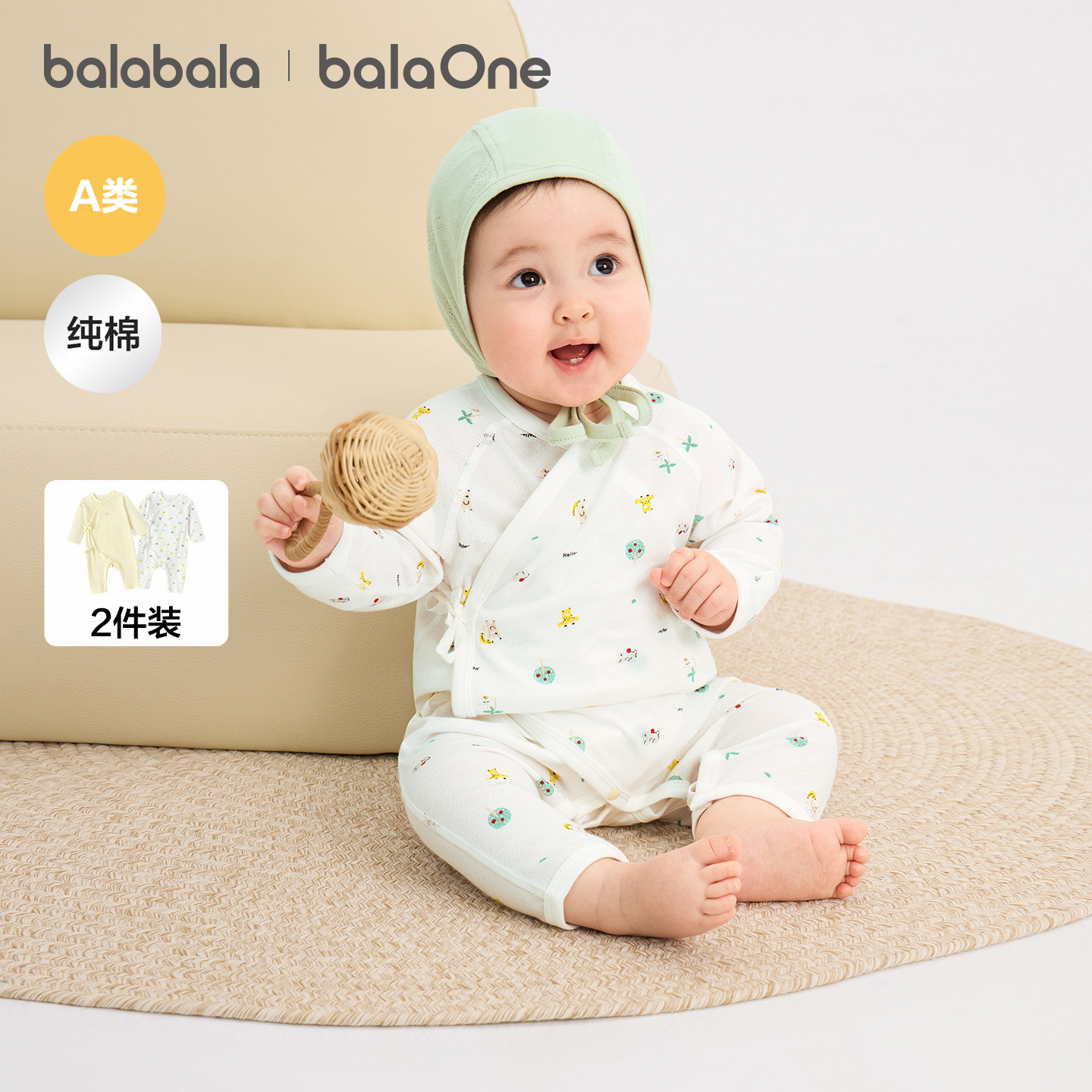 巴拉巴拉宝宝连体衣新生婴儿哈衣2026新款夏季2件装透气爬服衣服