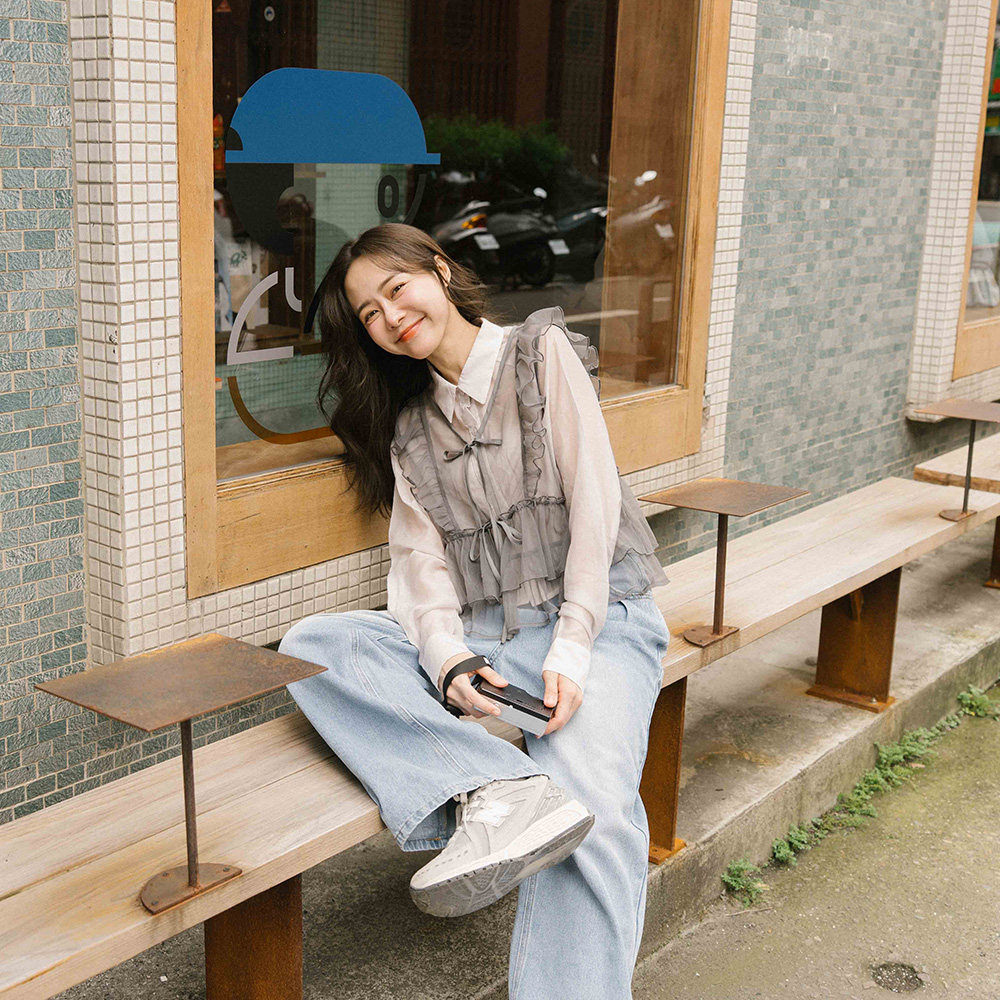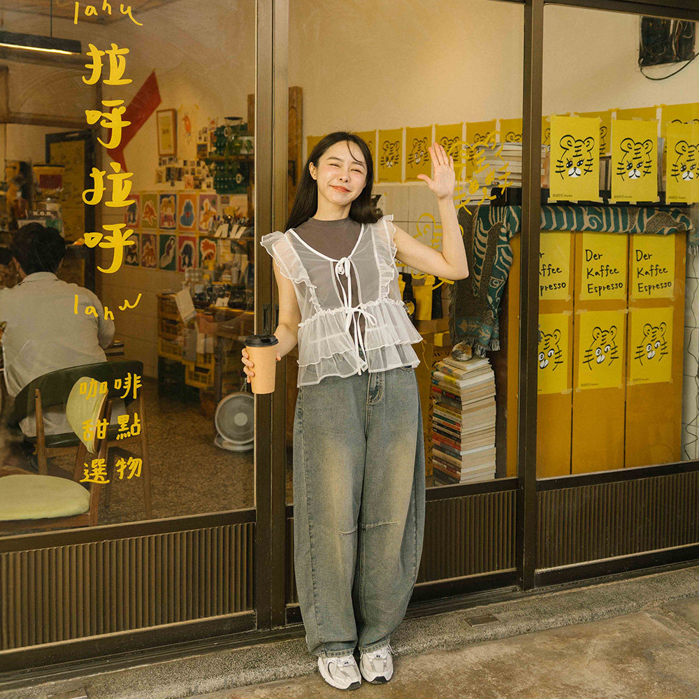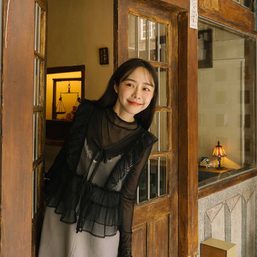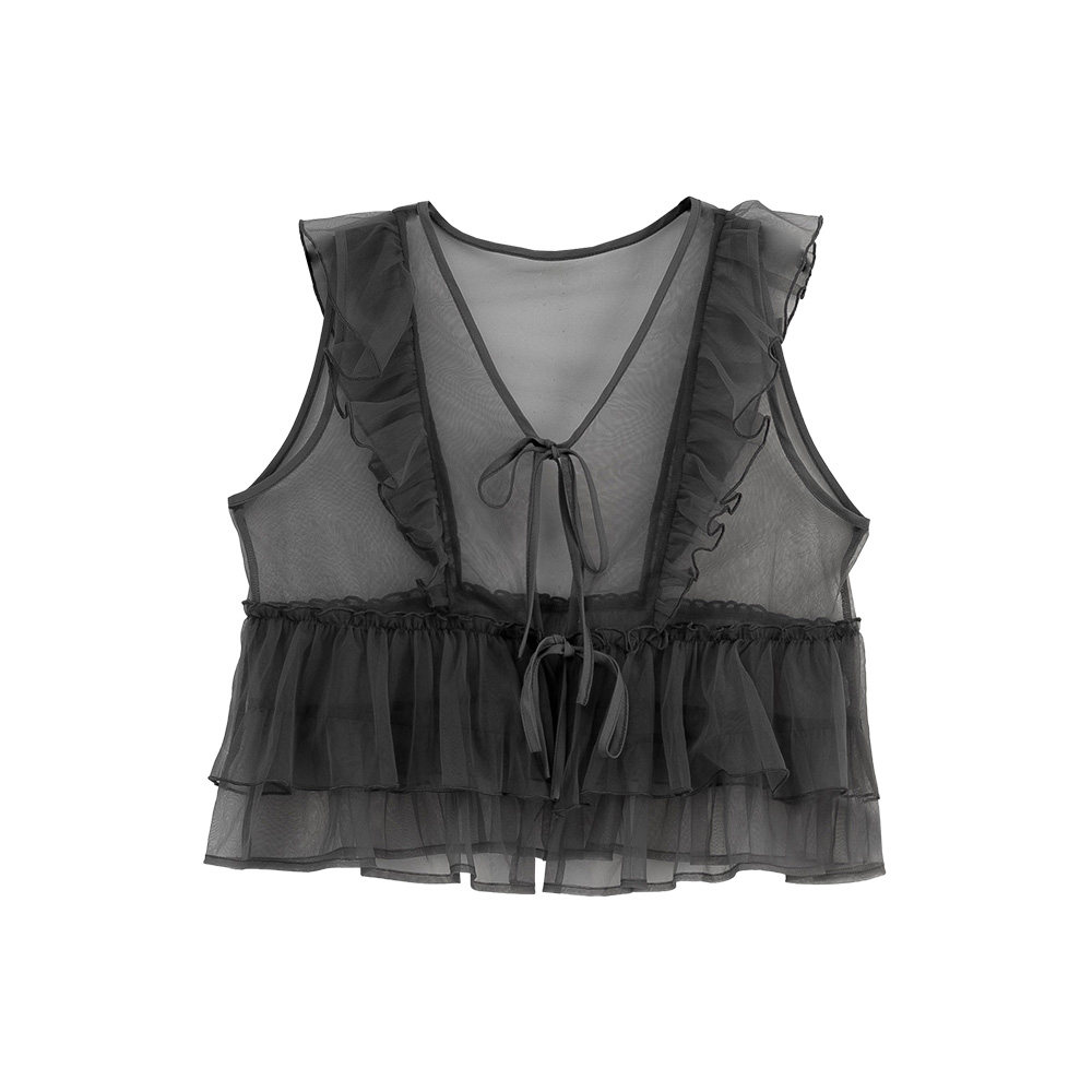 QUEENSHOP 2025秋冬新品女装荷叶绑带造型透纱背心罩衫01099103