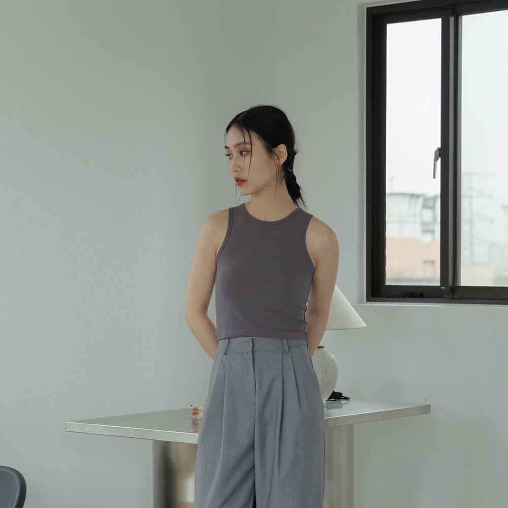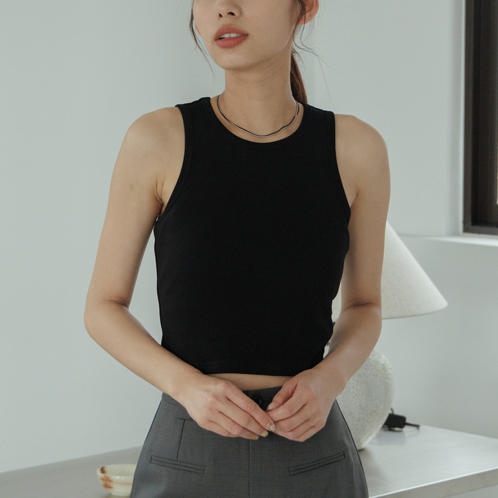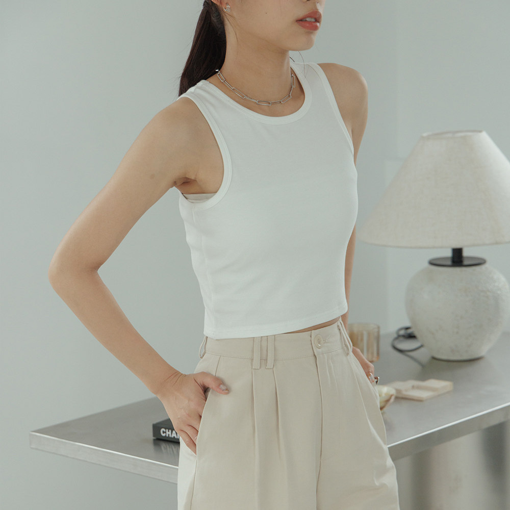 QUEENSHOP 2025春夏新品女装基本百搭素色削肩设计背心01150346