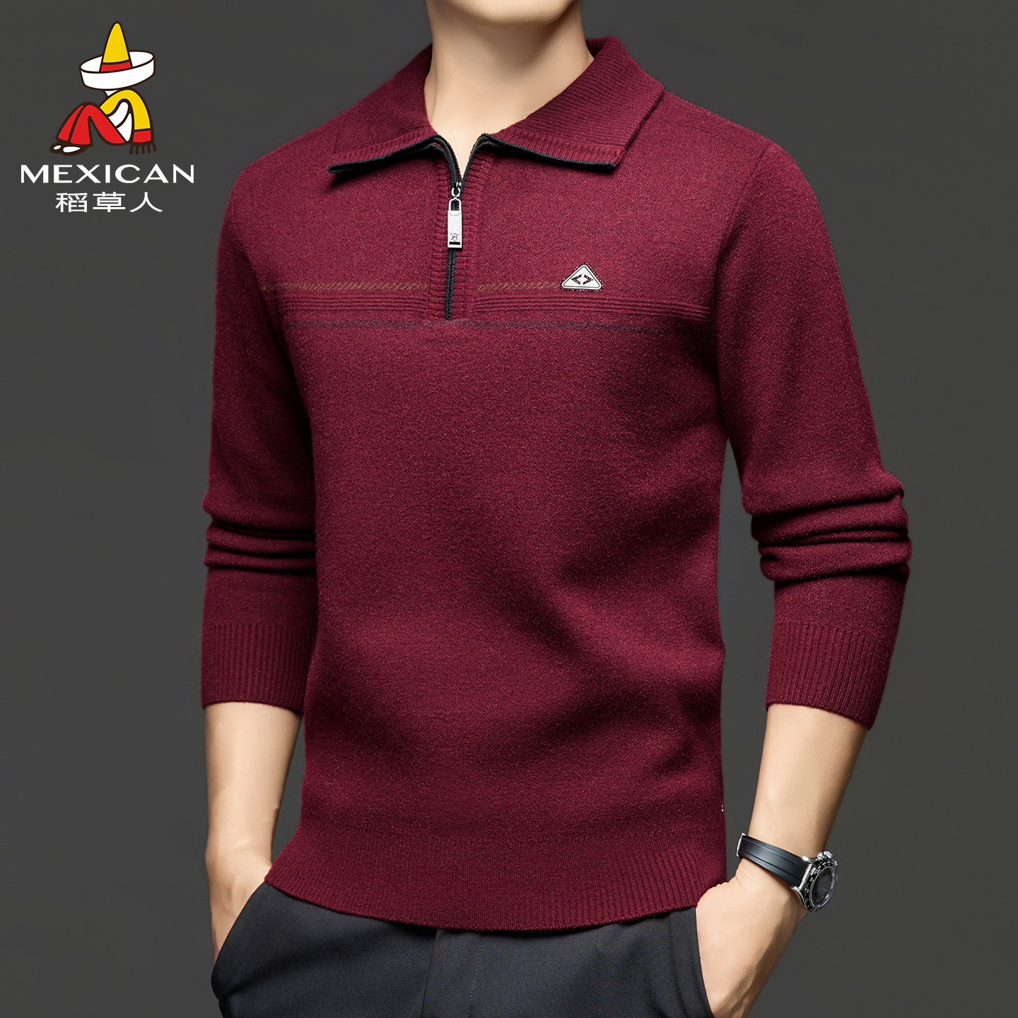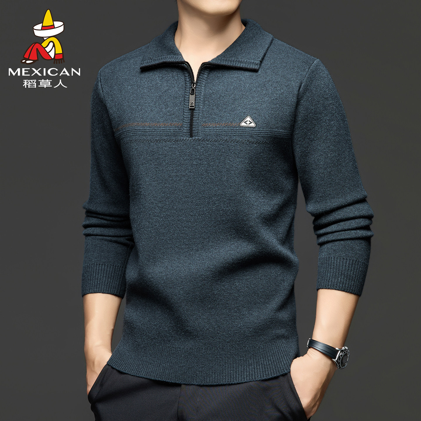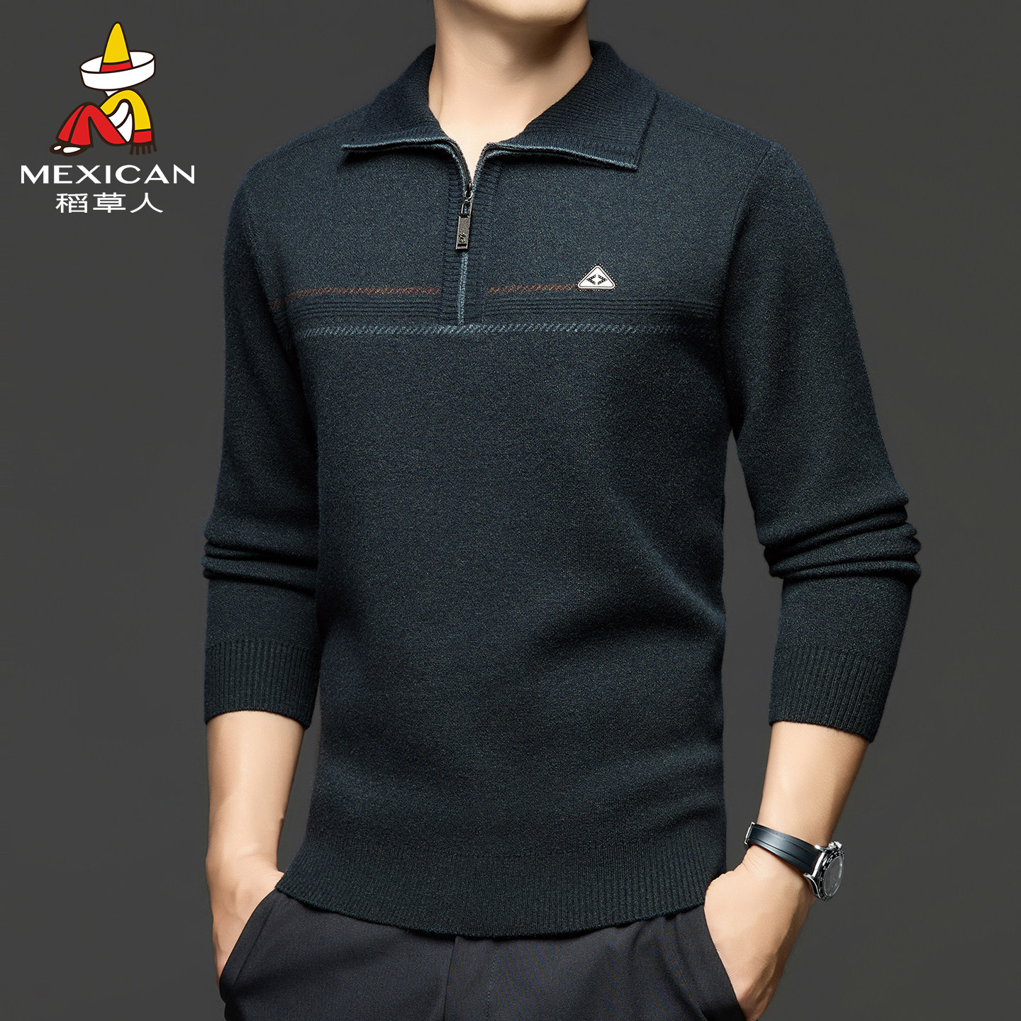 稻草人针织衫男士毛衣秋冬2025新款半拉链中老年爸爸装线衣保暖J
