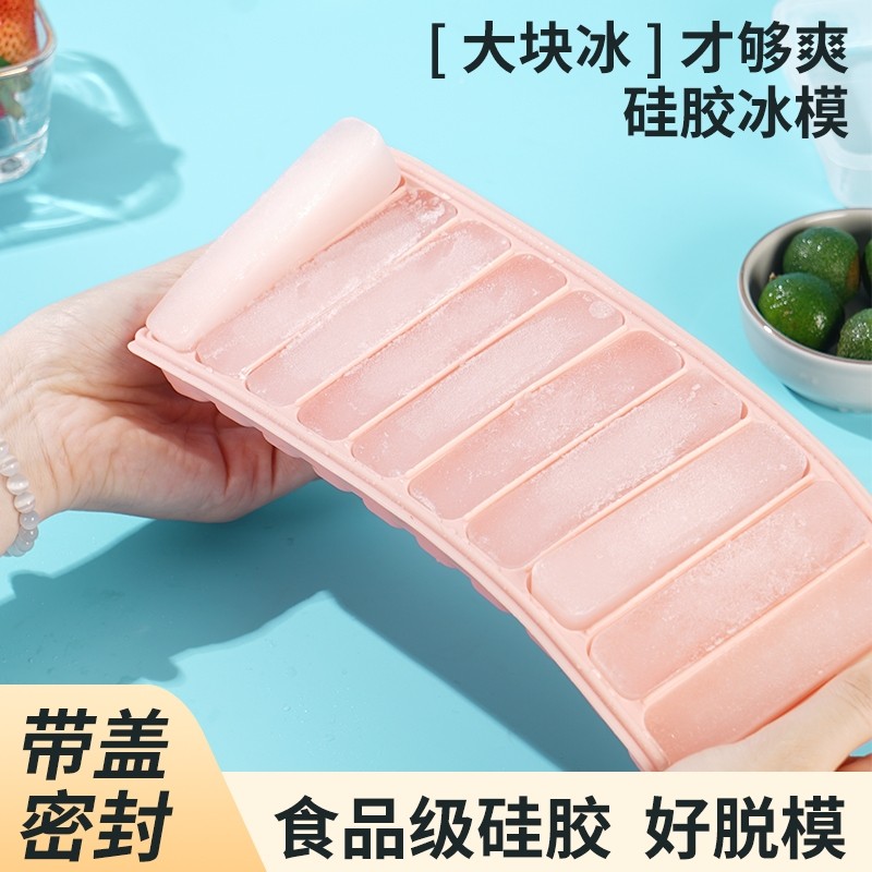 硅胶冰格长条大冰块模具制冰盒洋酒辅食盒带盖家用方形冰条冰箱