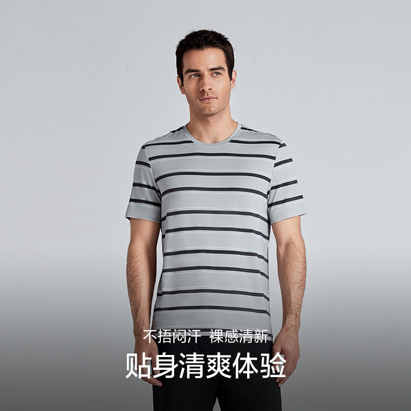 爱慕先生条纹莫代尔家居服套装男士短袖长裤睡衣2025年春夏