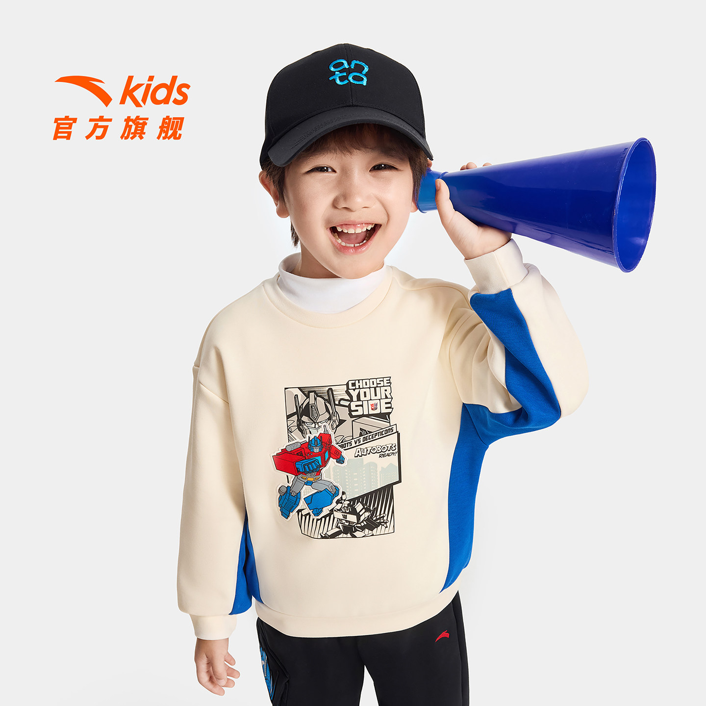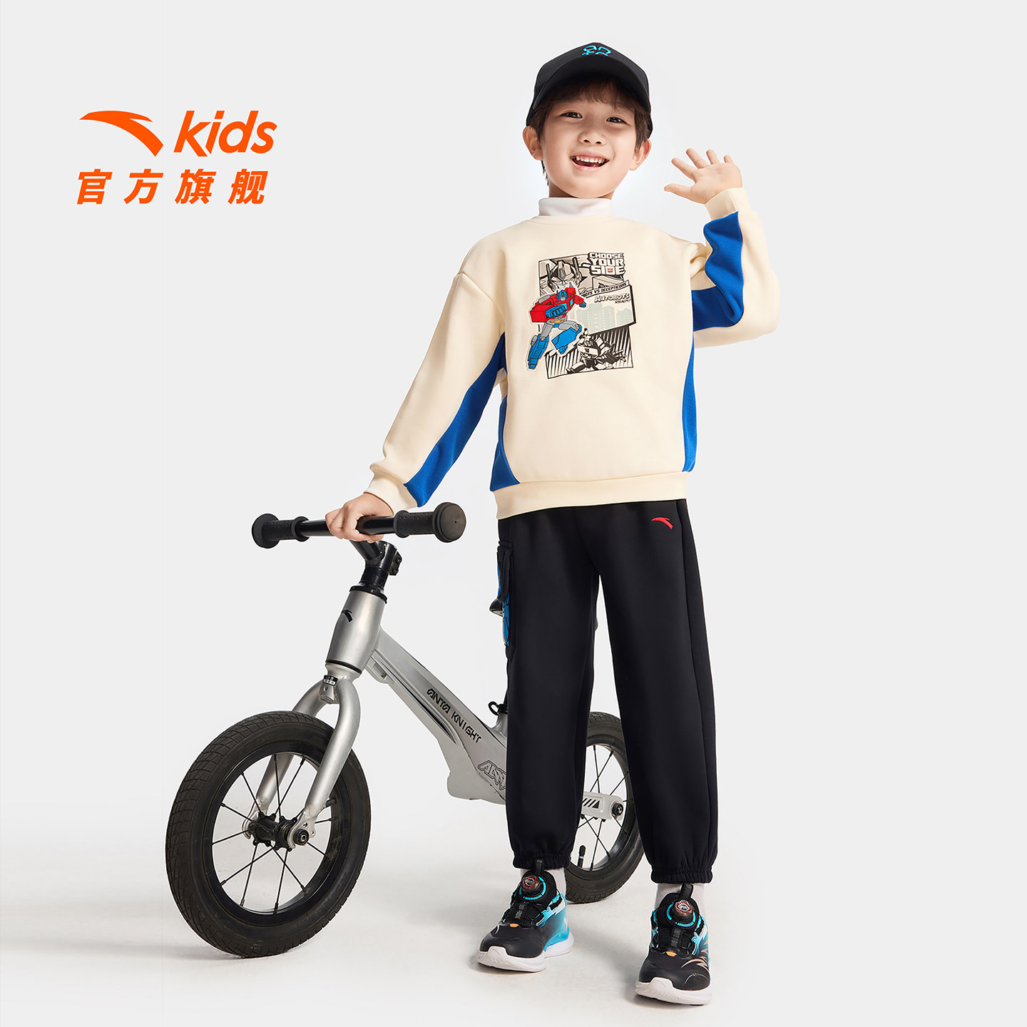 安踏儿童男小童针织套头衫2025冬款上新保暖儿童加绒卫衣变形金刚