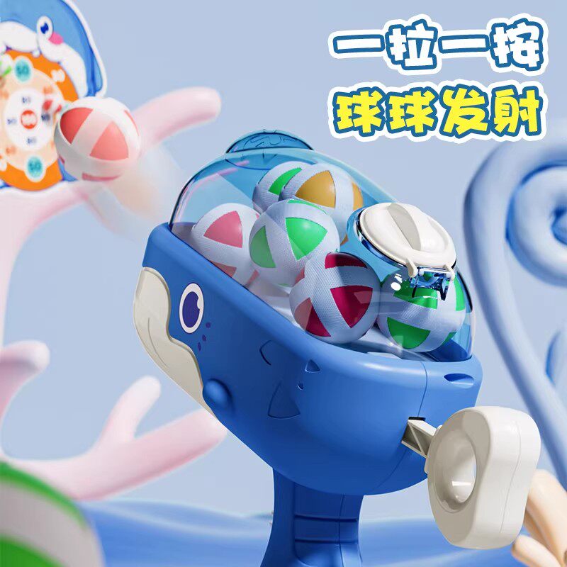 儿童鲸鱼粘粘球球枪标靶玩具弹射粘球亲子射击互动反应力培养玩具