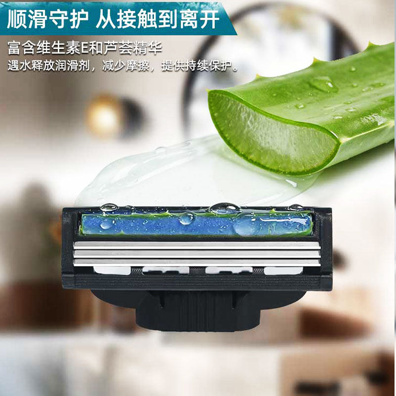 【活动中】新款3层手动刮胡刀男剃头剃须刀片通用锋利三层刀头