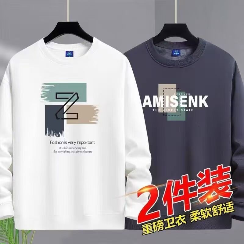 纯棉卫衣男士春秋季宽松圆领套头加绒长袖T恤打底衫男装百搭上衣