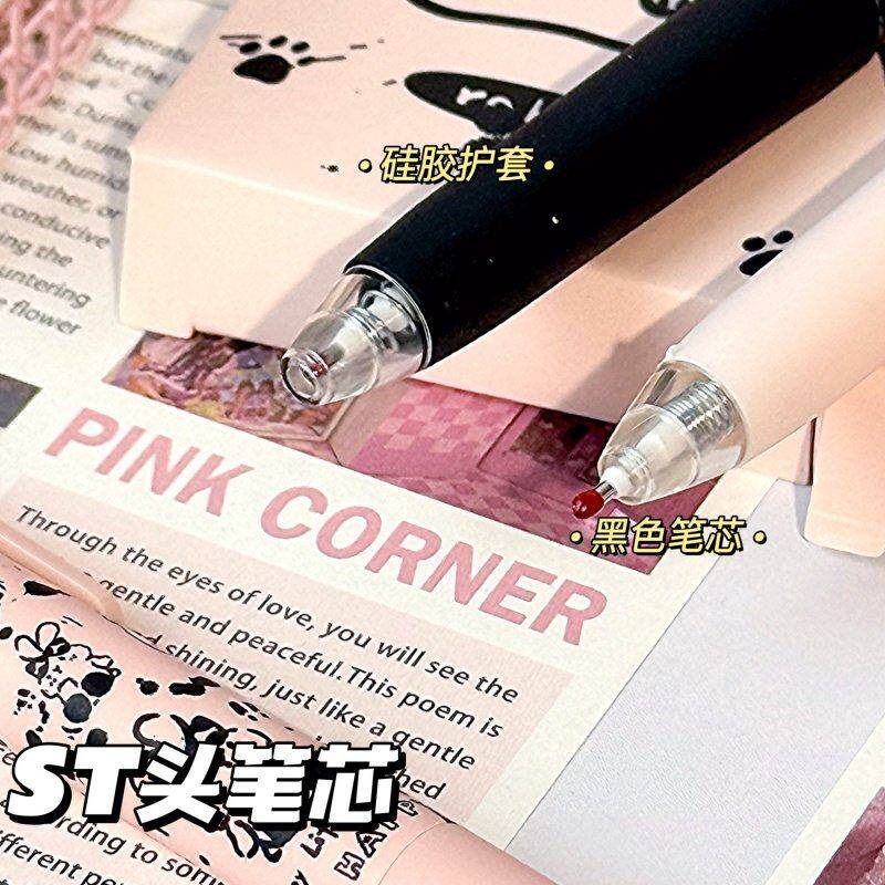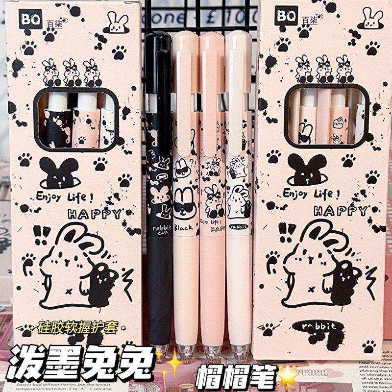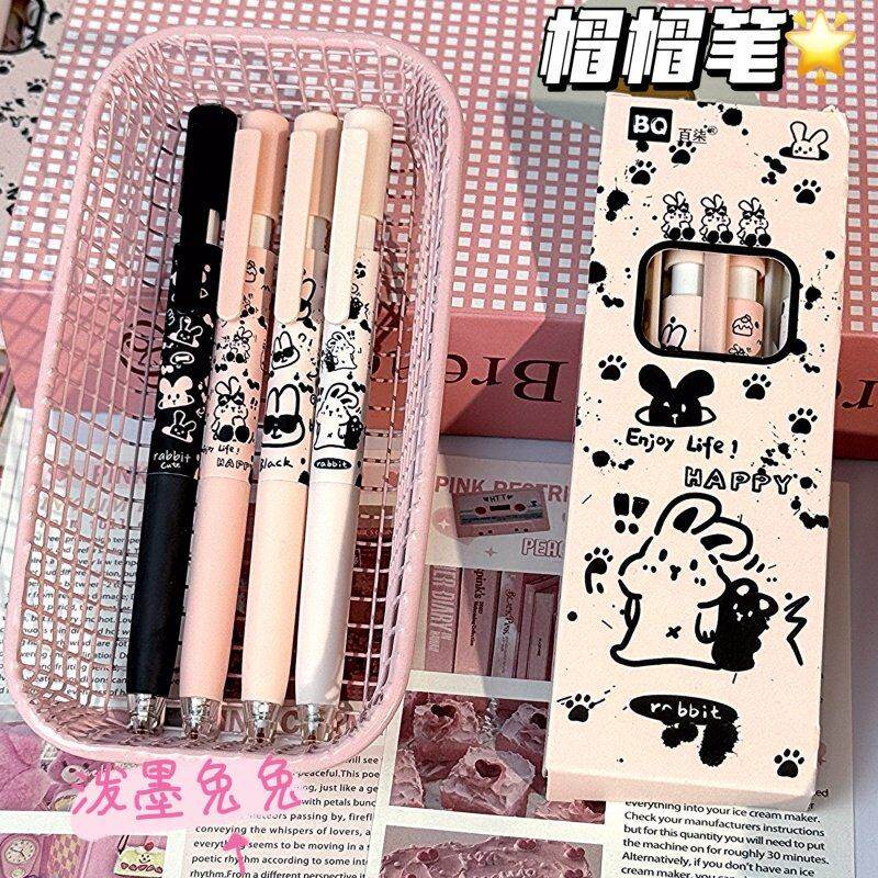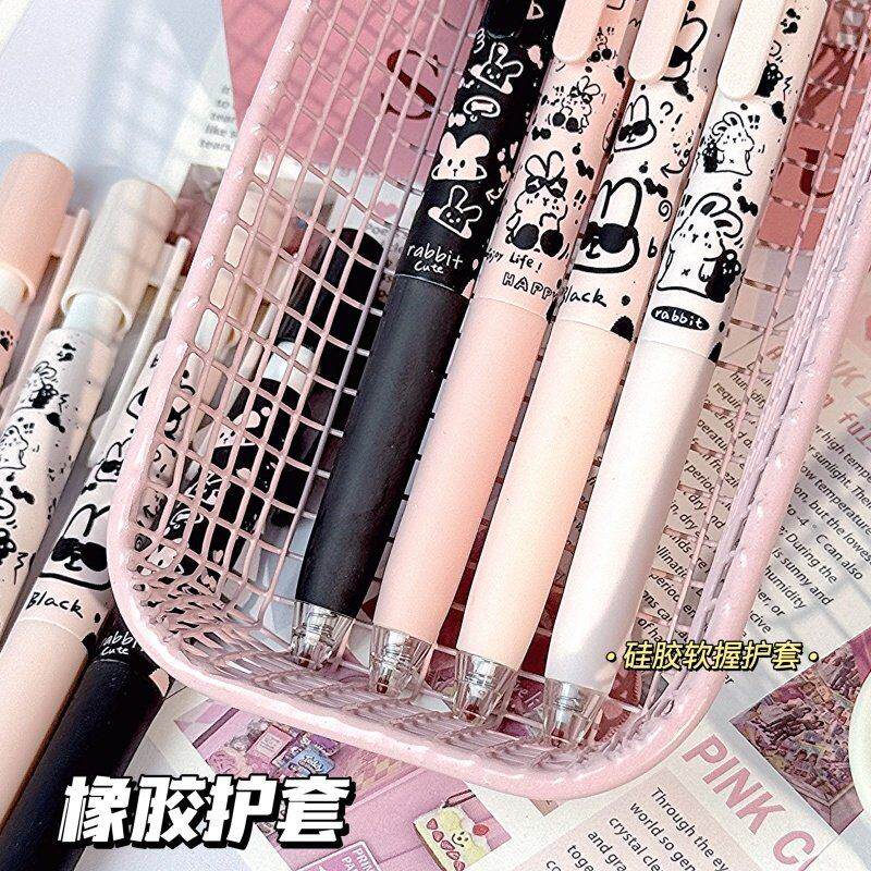 ins高颜值泼墨兔兔帽帽按动中性笔学生考试专用ST速干0.5刷题黑笔