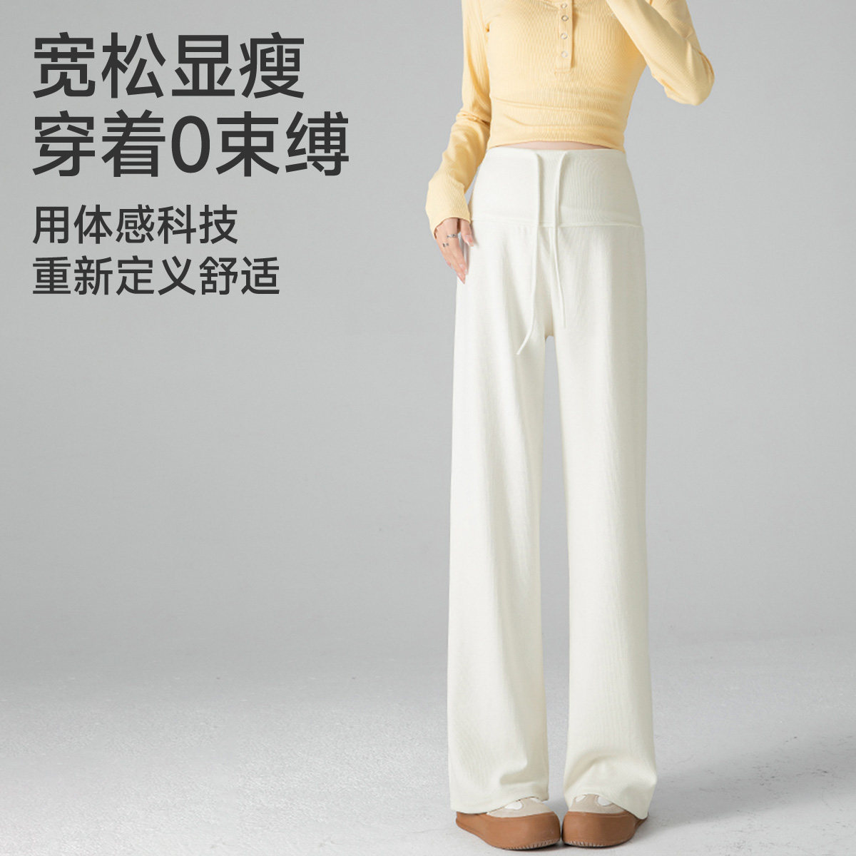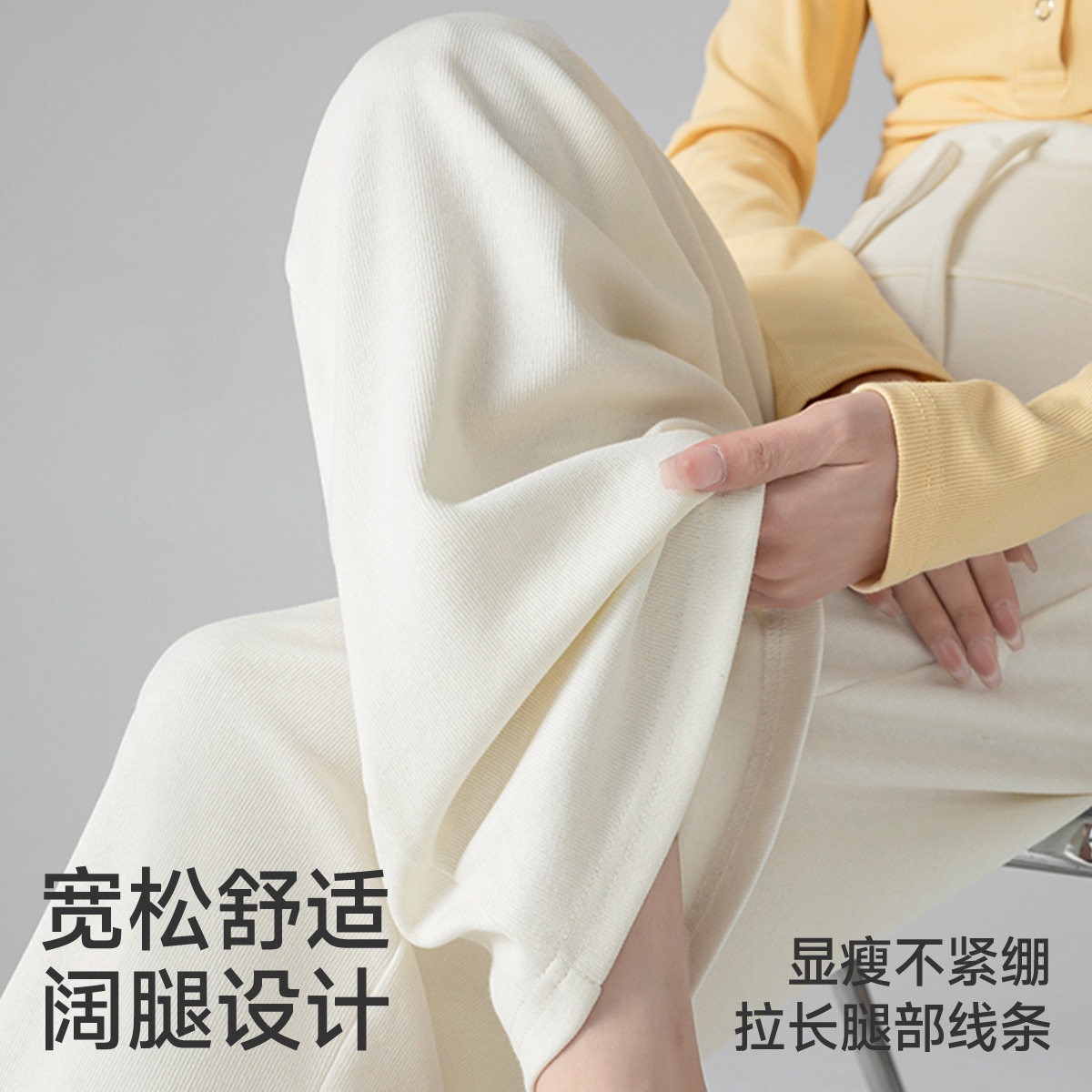 十月结晶孕妇裤冬季小个子垂感阔腿裤松紧腰部妈妈外穿加绒长裤女