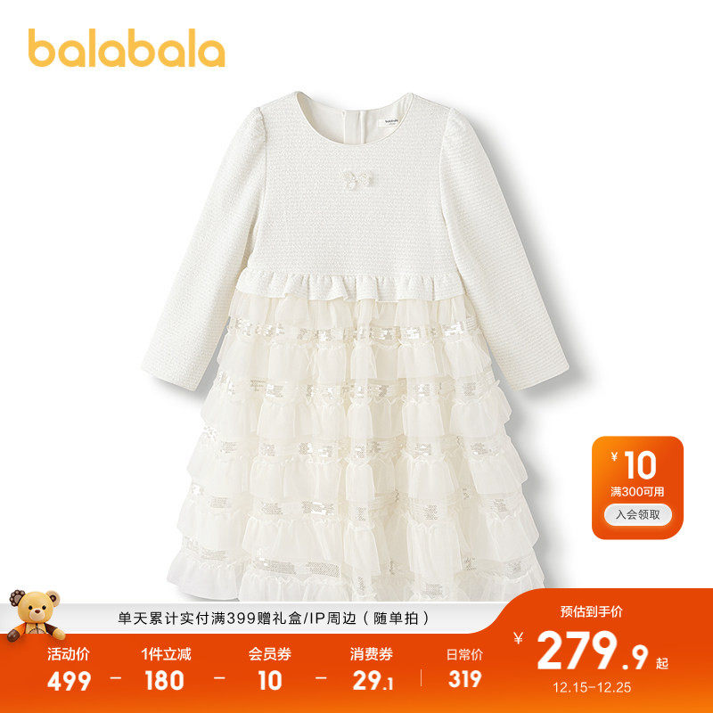 【商场同款】巴拉巴拉儿童女童连衣裙2025秋新款公主网纱蛋糕裙子