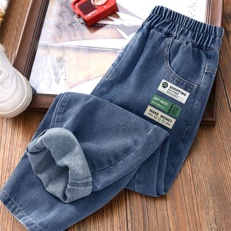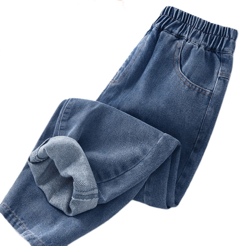 男童裤子春秋冬季新款儿童一体绒直筒裤童装大童加绒加厚牛仔裤潮