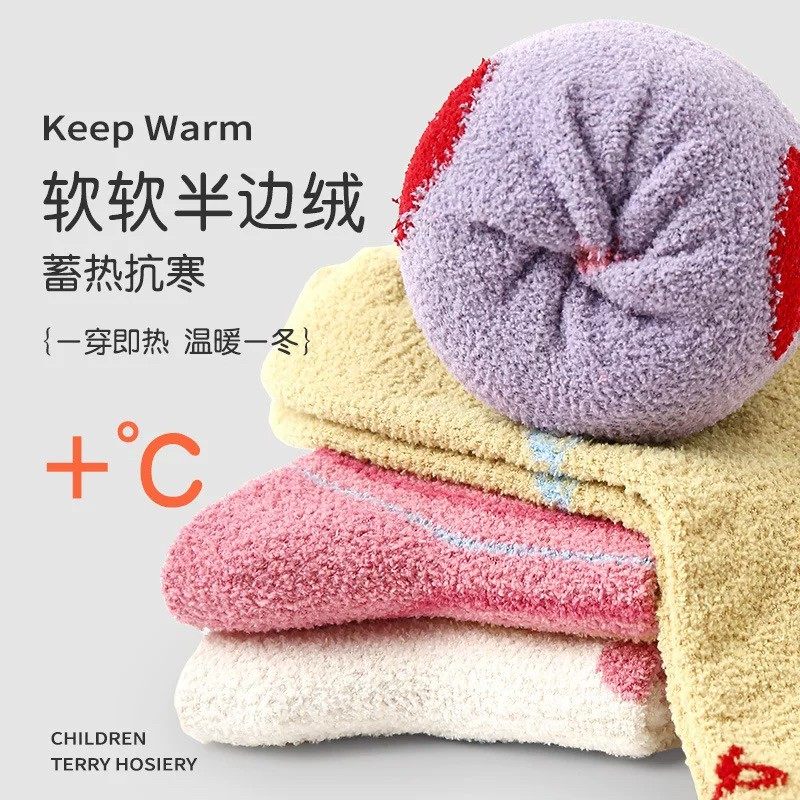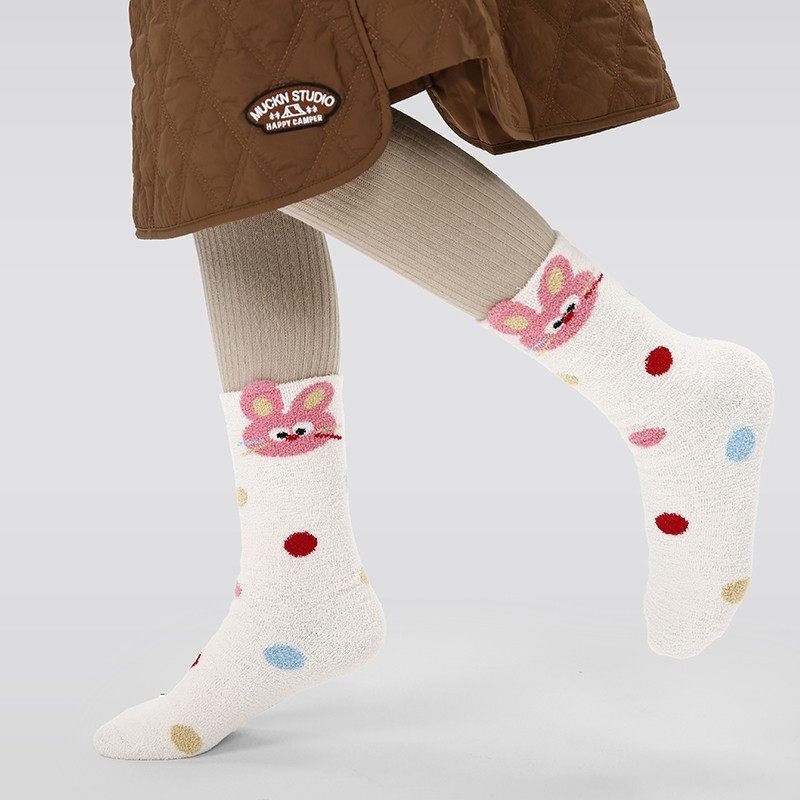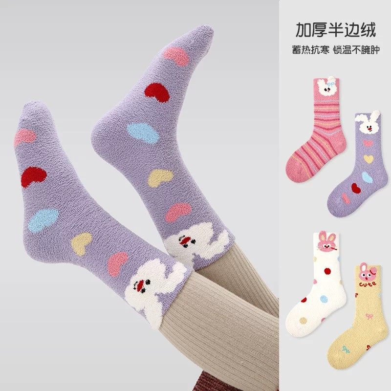 女童袜子秋冬款中筒袜儿童冬季加绒加厚袜宝宝可爱珊瑚绒兔子袜子
