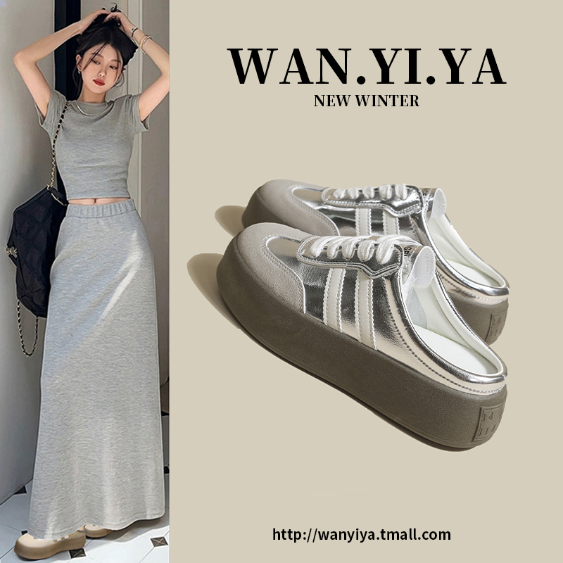 厚底勃肯鞋女2025新款冬季女鞋加绒半拖一脚蹬穆勒鞋子增高博肯鞋