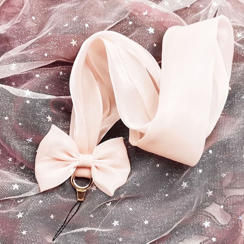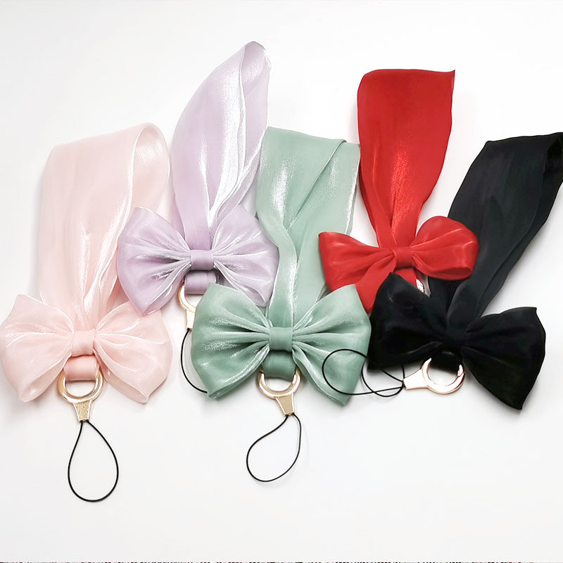 JK闪光羽根纯色蝴蝶结手机挂绳挂脖挂饰宽带子通用长款挂链防丢绳