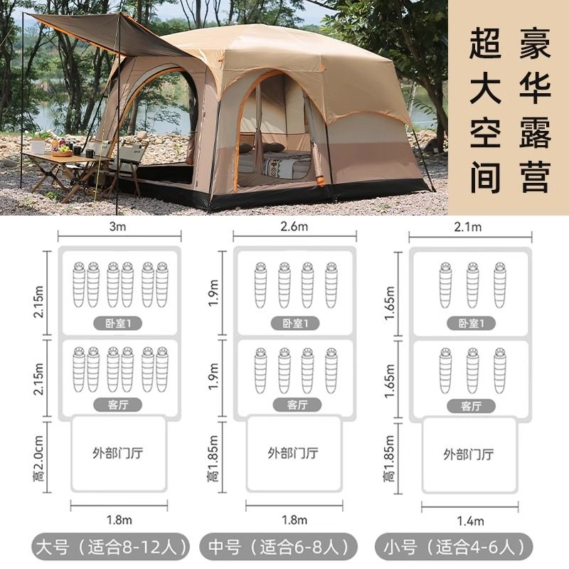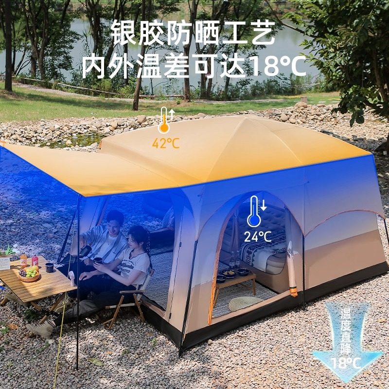 帐篷户外野营过夜两室一厅折叠便携式加厚防雨野外遮阳棚露营装备