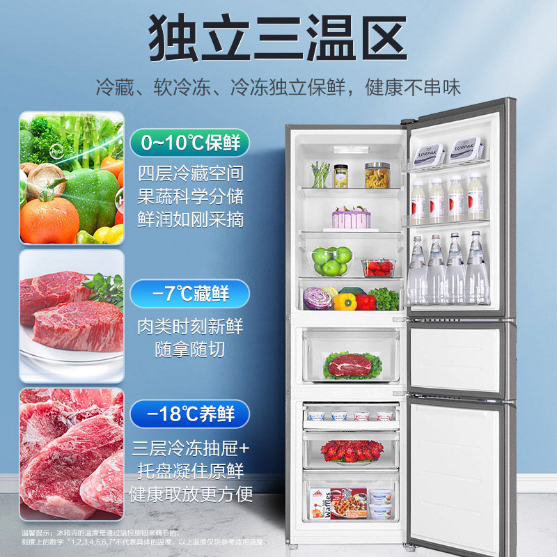 政府补贴海尔出品统帅三开门251L一级风冷无霜租房小型家用电冰箱