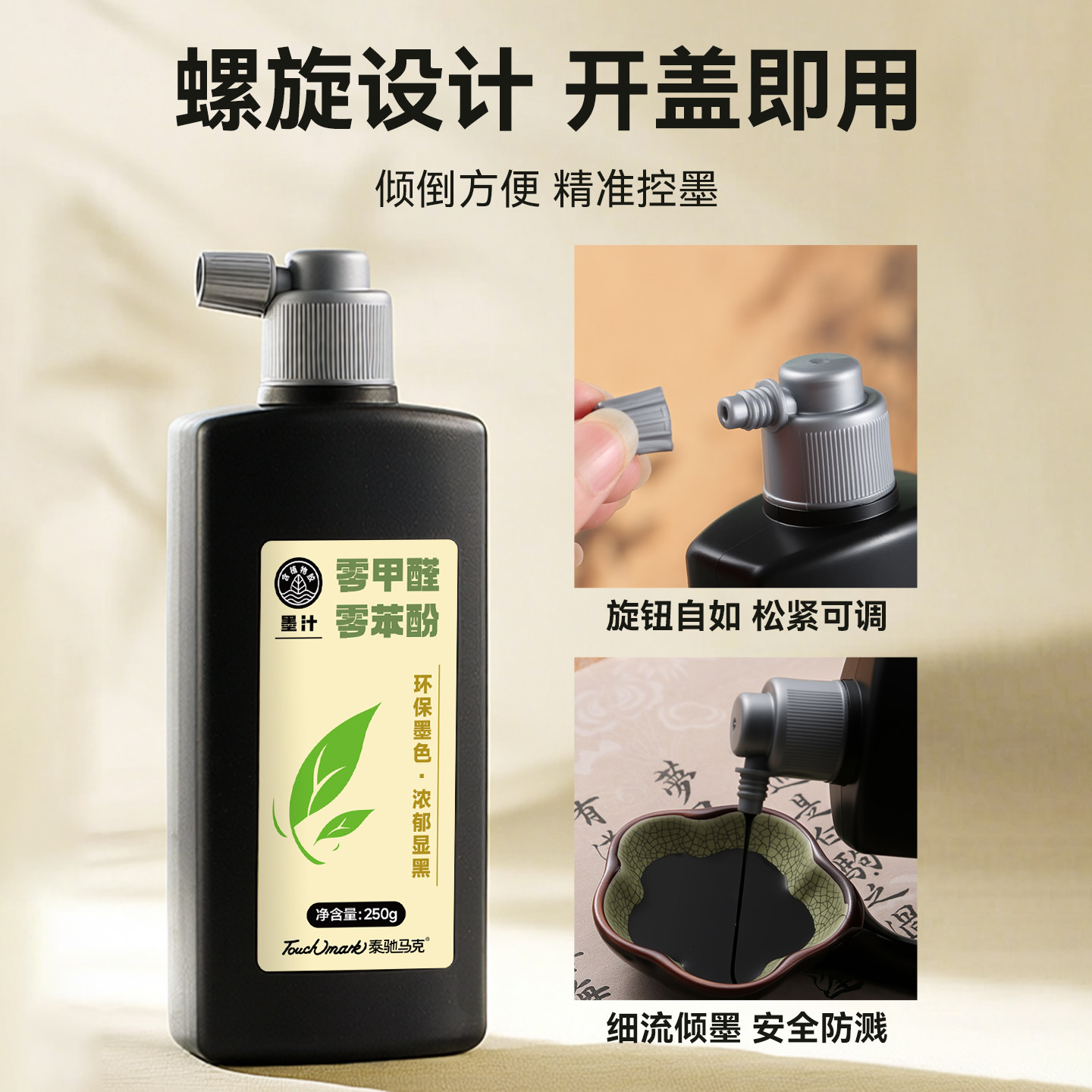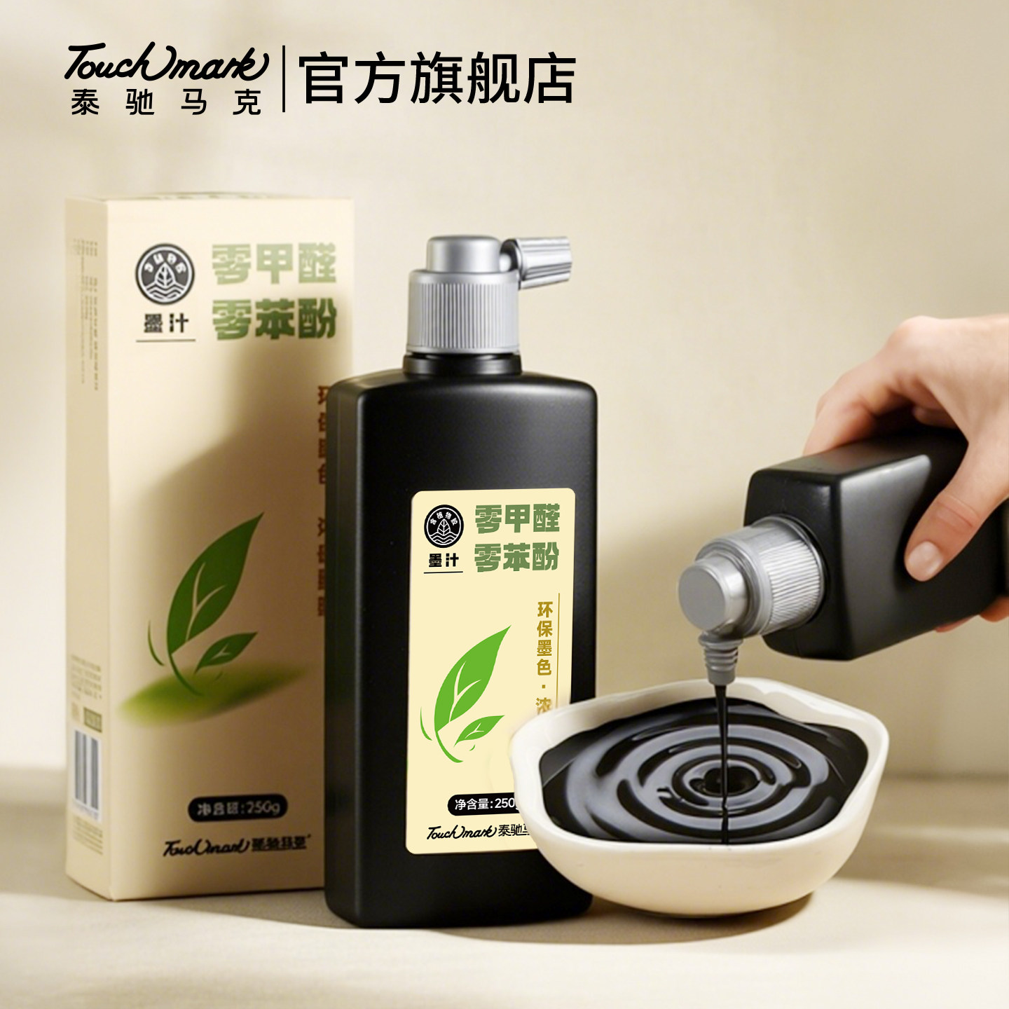 touchmark零甲醛墨汁书法专用文房四宝小楷书画墨液国画颜料500g大瓶大桶油烟墨学生初学者写毛笔字练习墨水