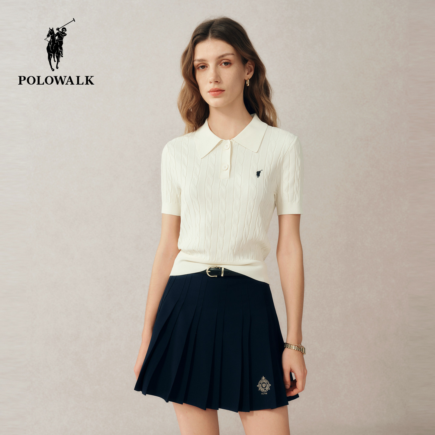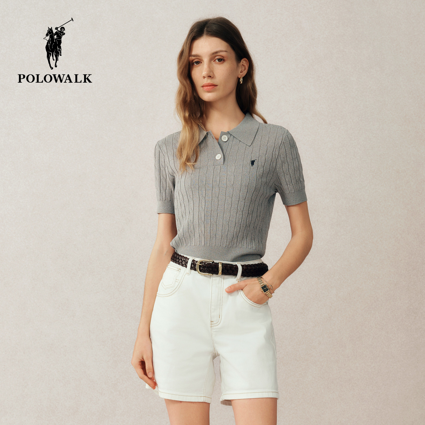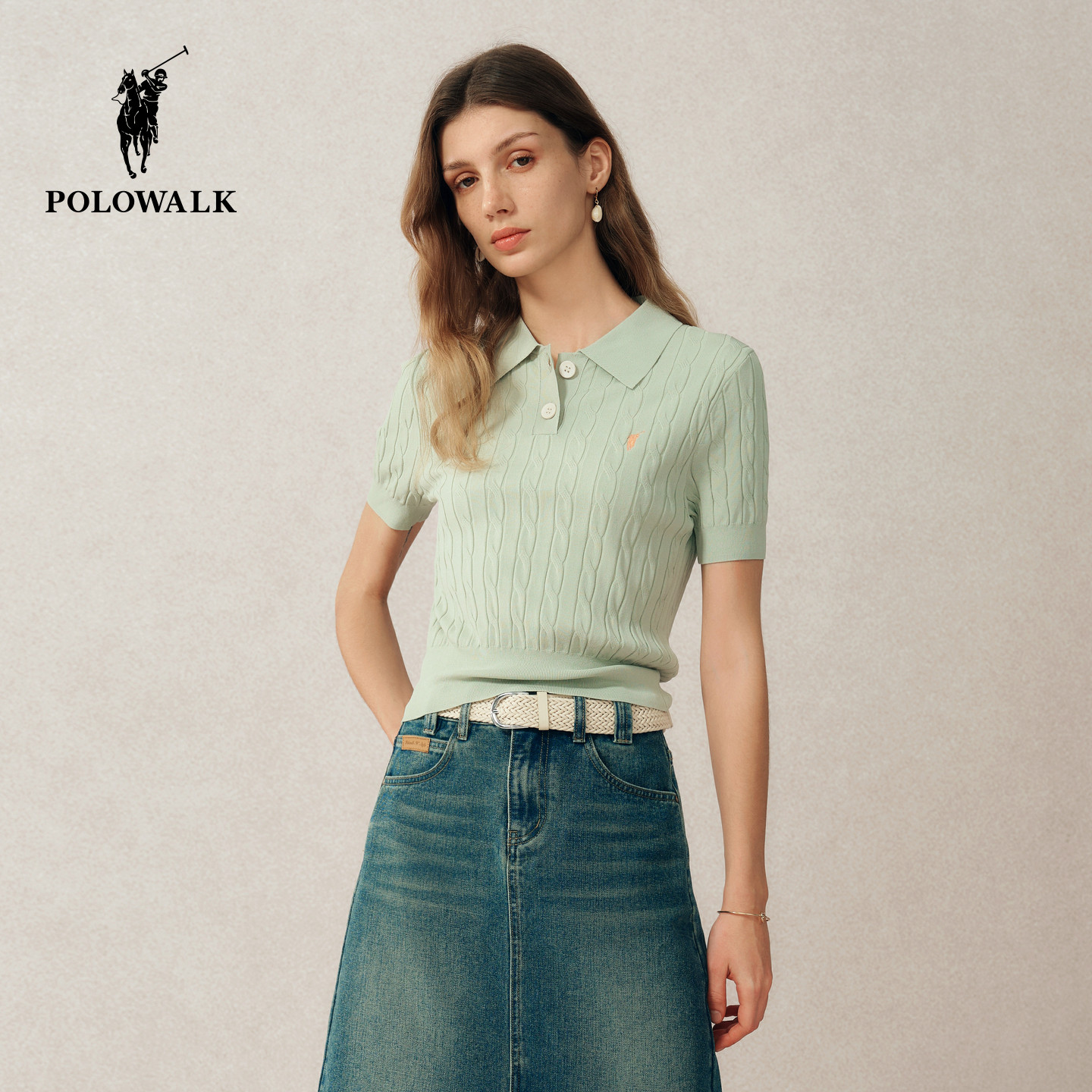 POLOWALK女士短袖针织衫2026夏季针织绞花设计通勤时尚休闲毛衣潮