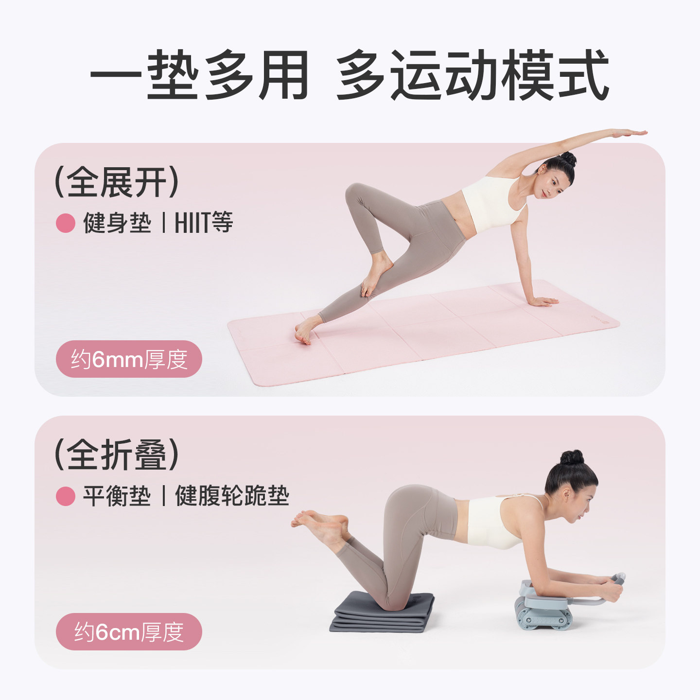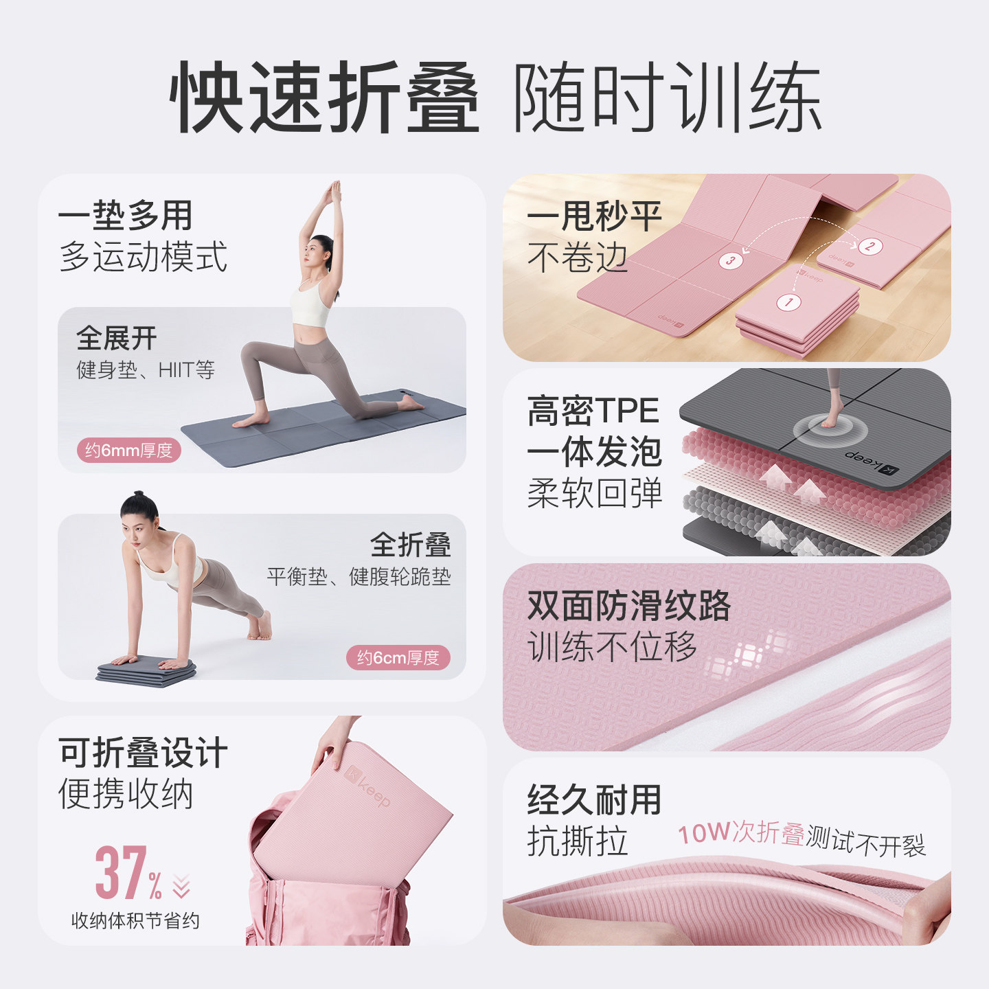 Keep折叠瑜伽垫女运动健身防滑减震静音加厚便携睡觉垫子地垫