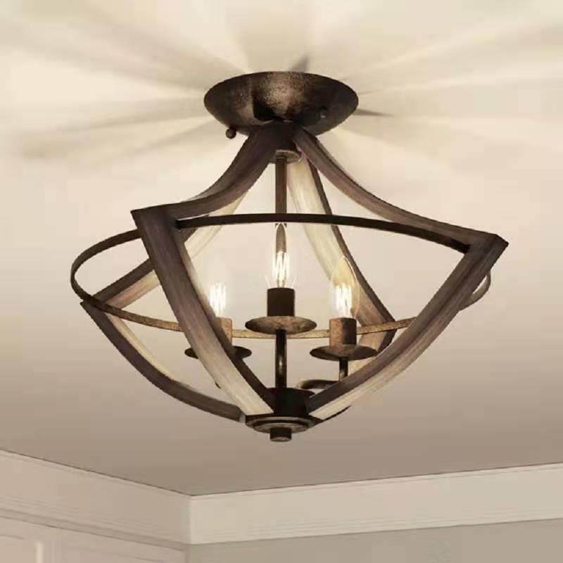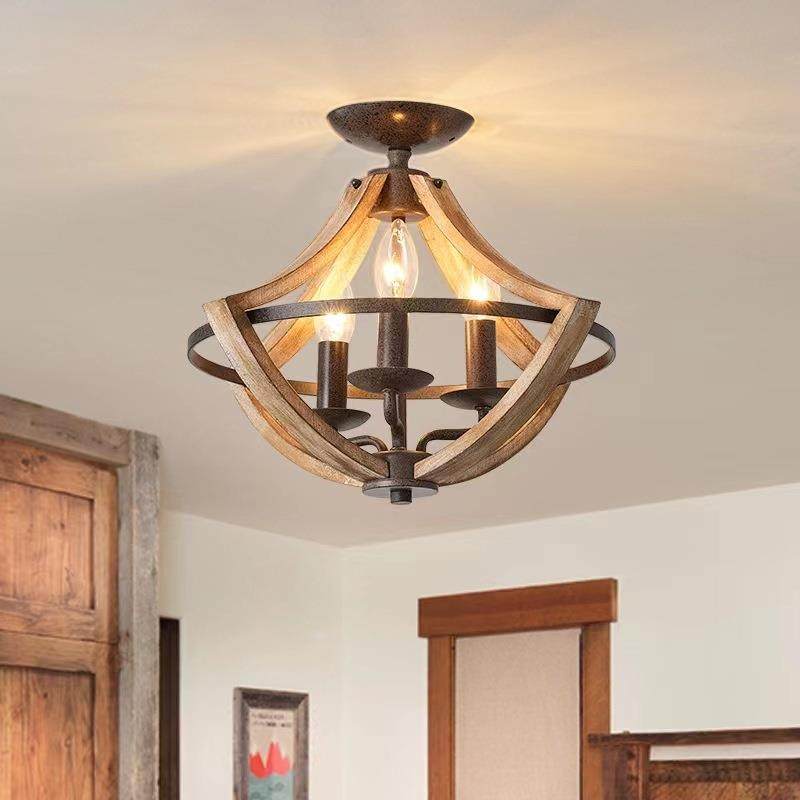创意美式乡村复古做旧木艺吊灯简约个性玄关餐厅卧室走廊个性灯具