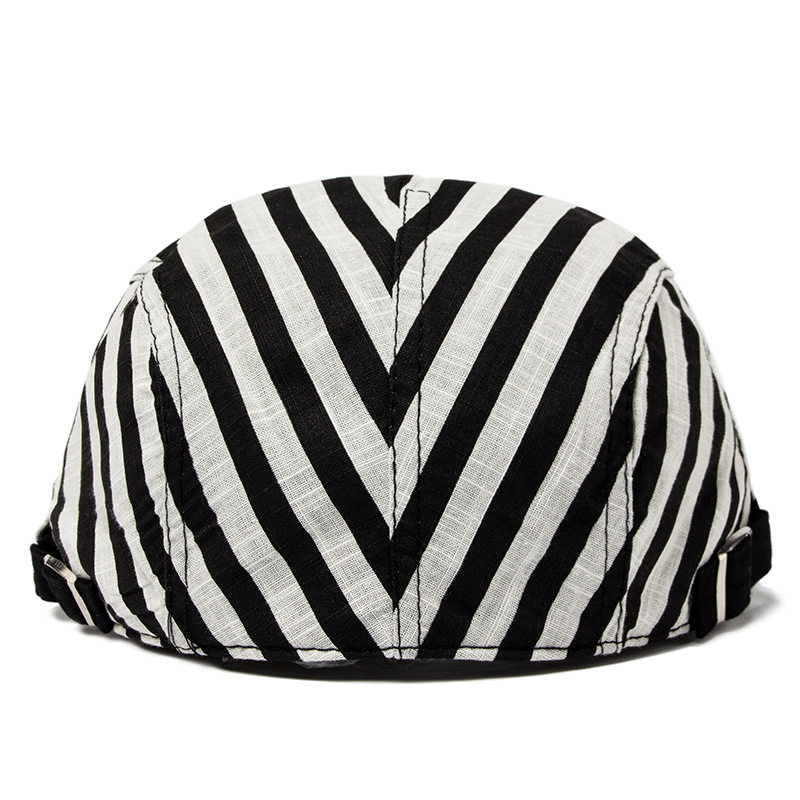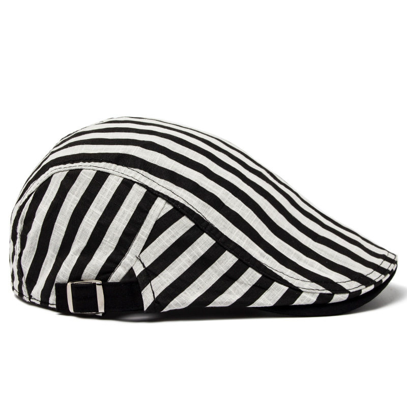 春夏季薄款鸭舌帽男士棉麻透气条纹贝雷帽文艺青年女遮阳帽子