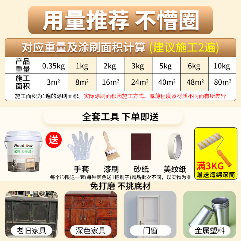 水性木器漆清漆家用自刷涂料旧家具翻新白漆实木木门改色专用油漆