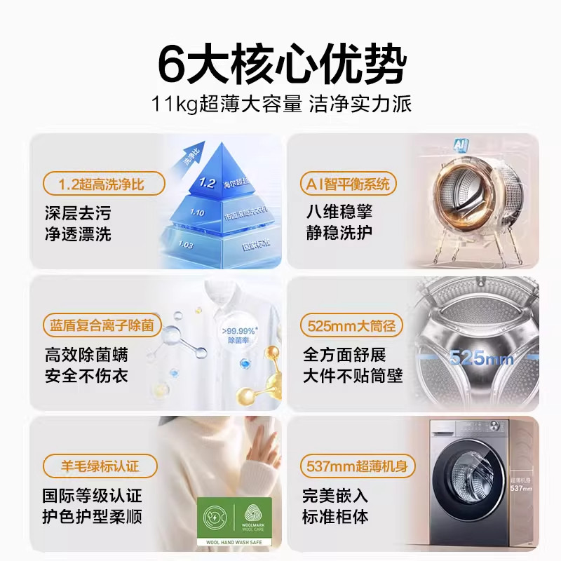 537mm超薄嵌入 525大筒直径 1.2超高洗净比