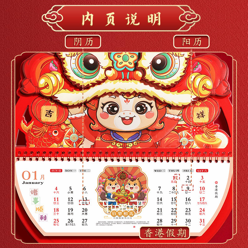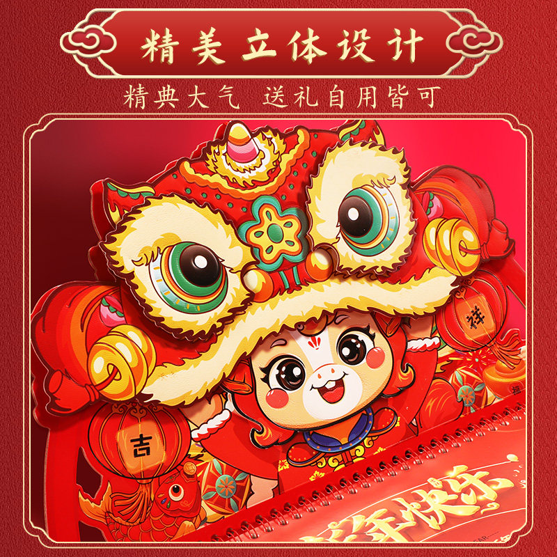 挂历2026年新款日历喜庆高档立体福字马年客厅摆件家用挂墙挂式定制手撕月历订制中国风送礼礼品广告logo私人