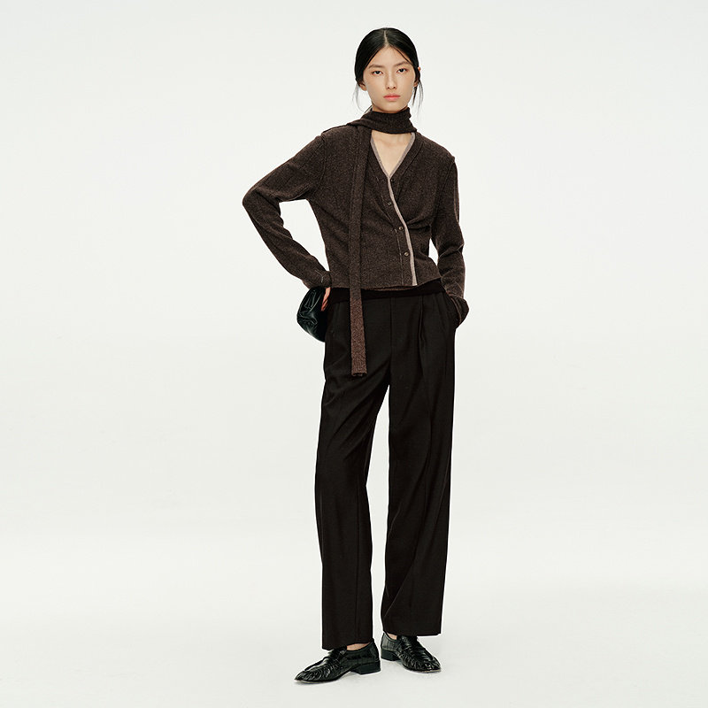 MESUX米岫25冬2/26NM美丽诺羊毛飘带V领撞色设计毛衣开衫MNWUE506