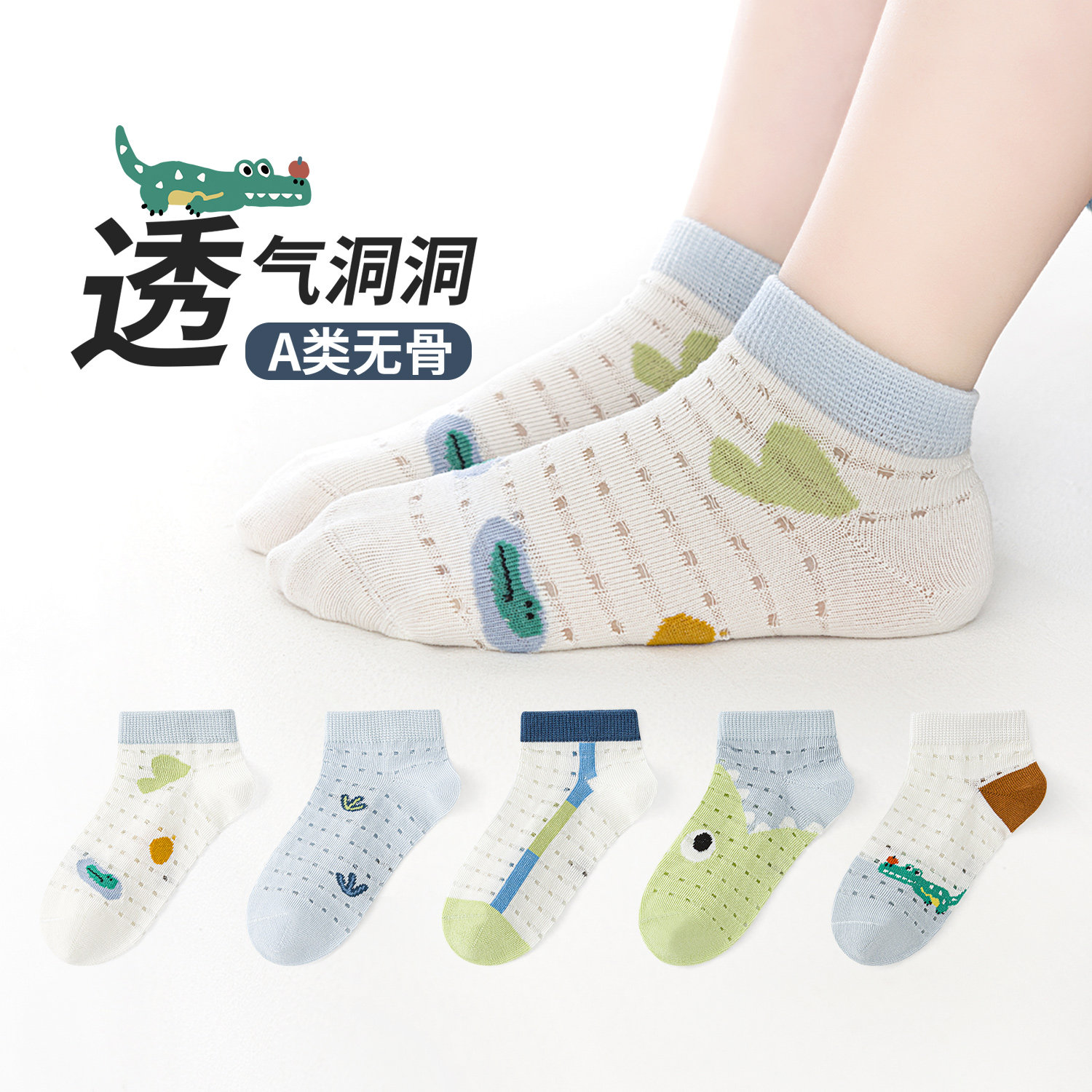 六指鼠儿童船袜夏季薄款短袜洞洞网眼透气夏天宝宝小男孩男童棉袜