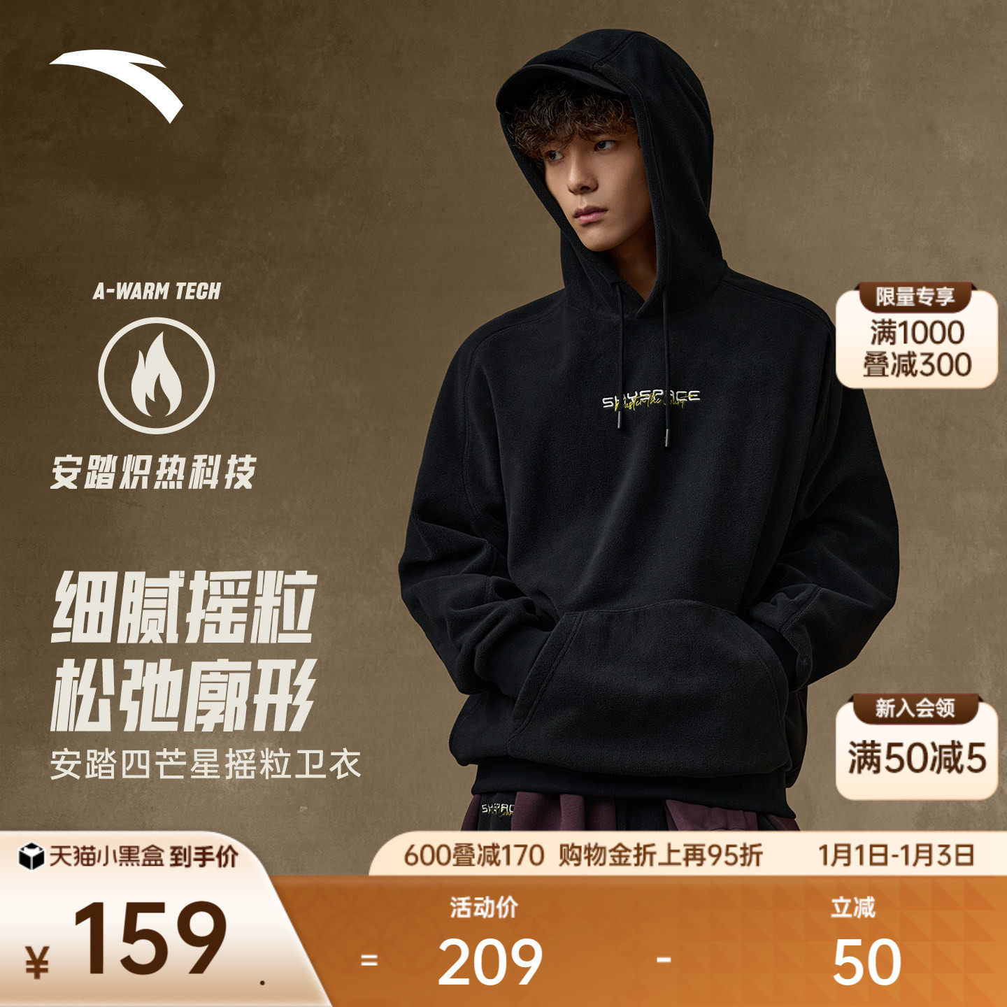 安踏美式摇粒绒撞色休闲连帽卫衣男冬季新款加绒保暖宽松长袖上衣