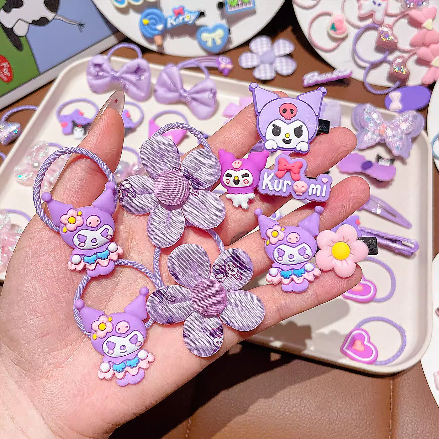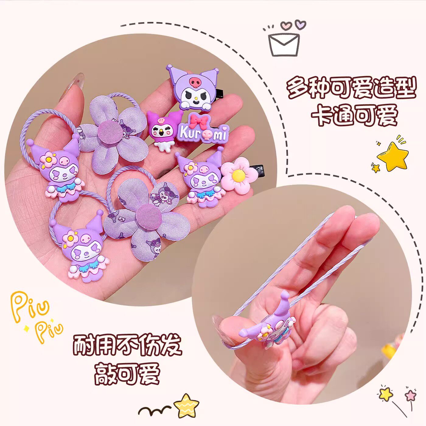 库洛米发饰儿童发夹女童可爱发圈头绳宝宝皮筋发卡小女孩头饰紫色