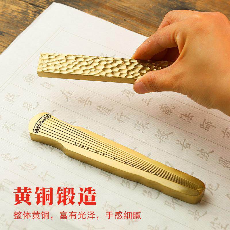 黄铜镇纸镇尺书法尺纸镇一对压书石古琴款波鳞款创意学生复古镇尺