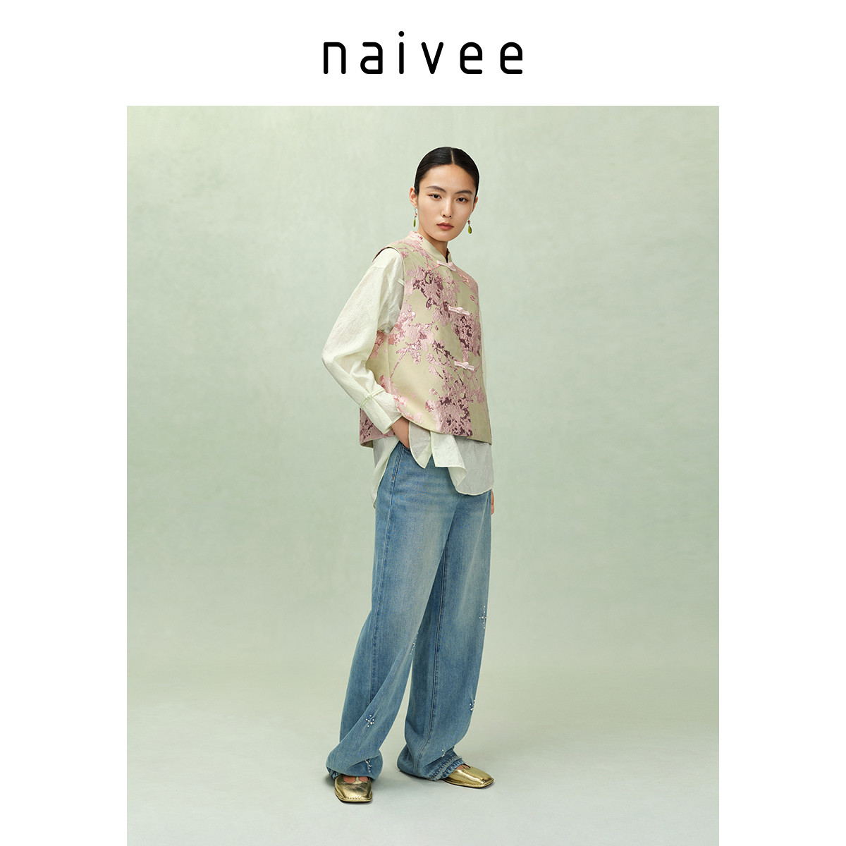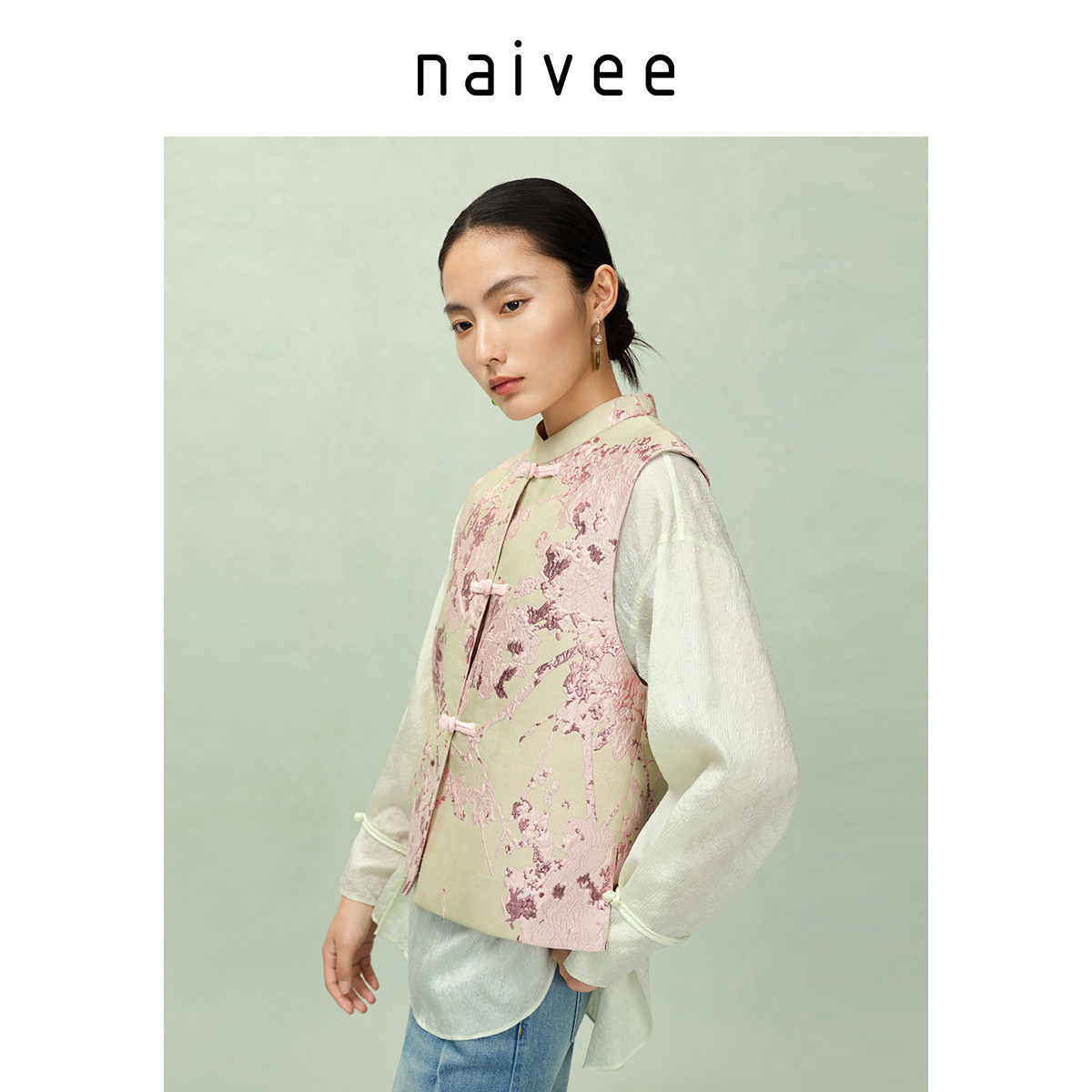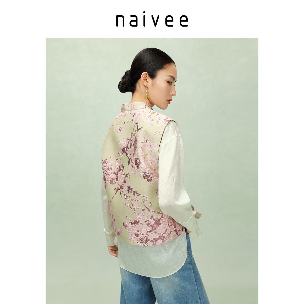 桃红柳绿马甲』naivee纳薇25秋新款新中式宋式锦提花无袖国风马甲