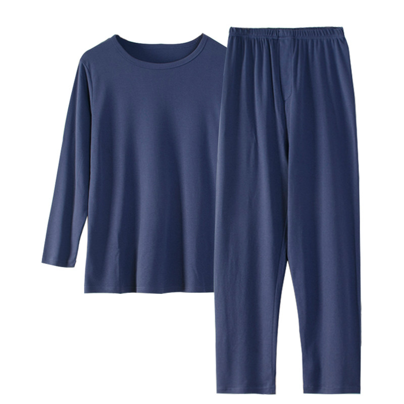 睡衣男士春秋款纯棉圆领长袖长裤家居服外穿纯色中年爸爸秋冬套装