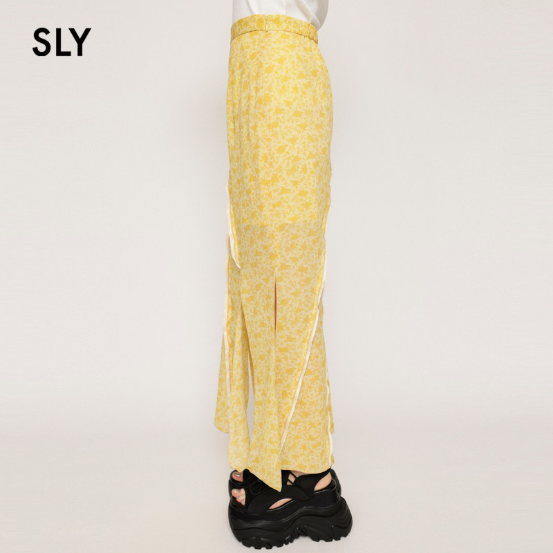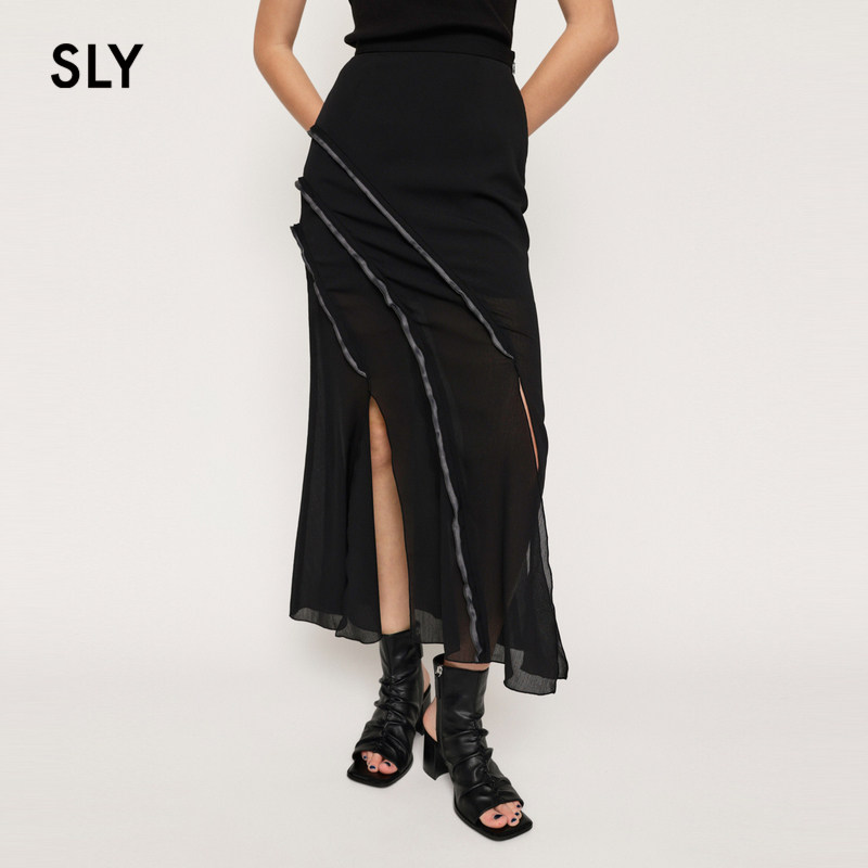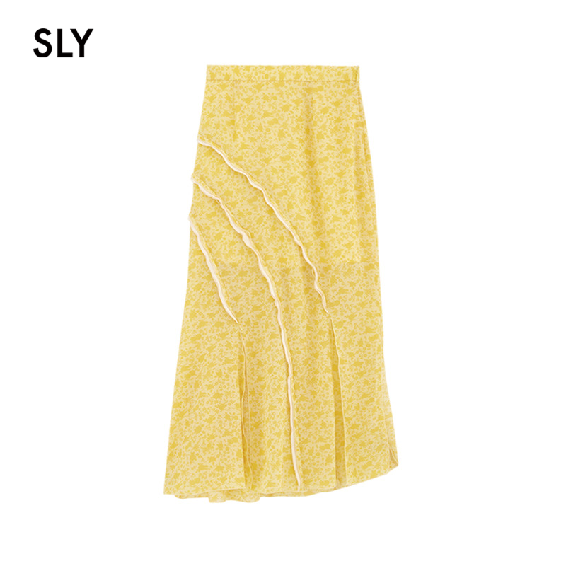 SLY 冬季高腰碎花开叉不对称中长半身裙女