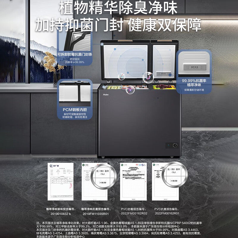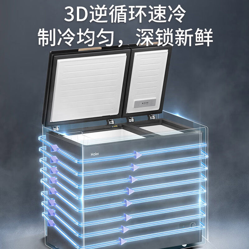 海尔双温冷柜216L升冰柜冷冻冷藏家用双箱大容量玻璃面板保鲜减霜